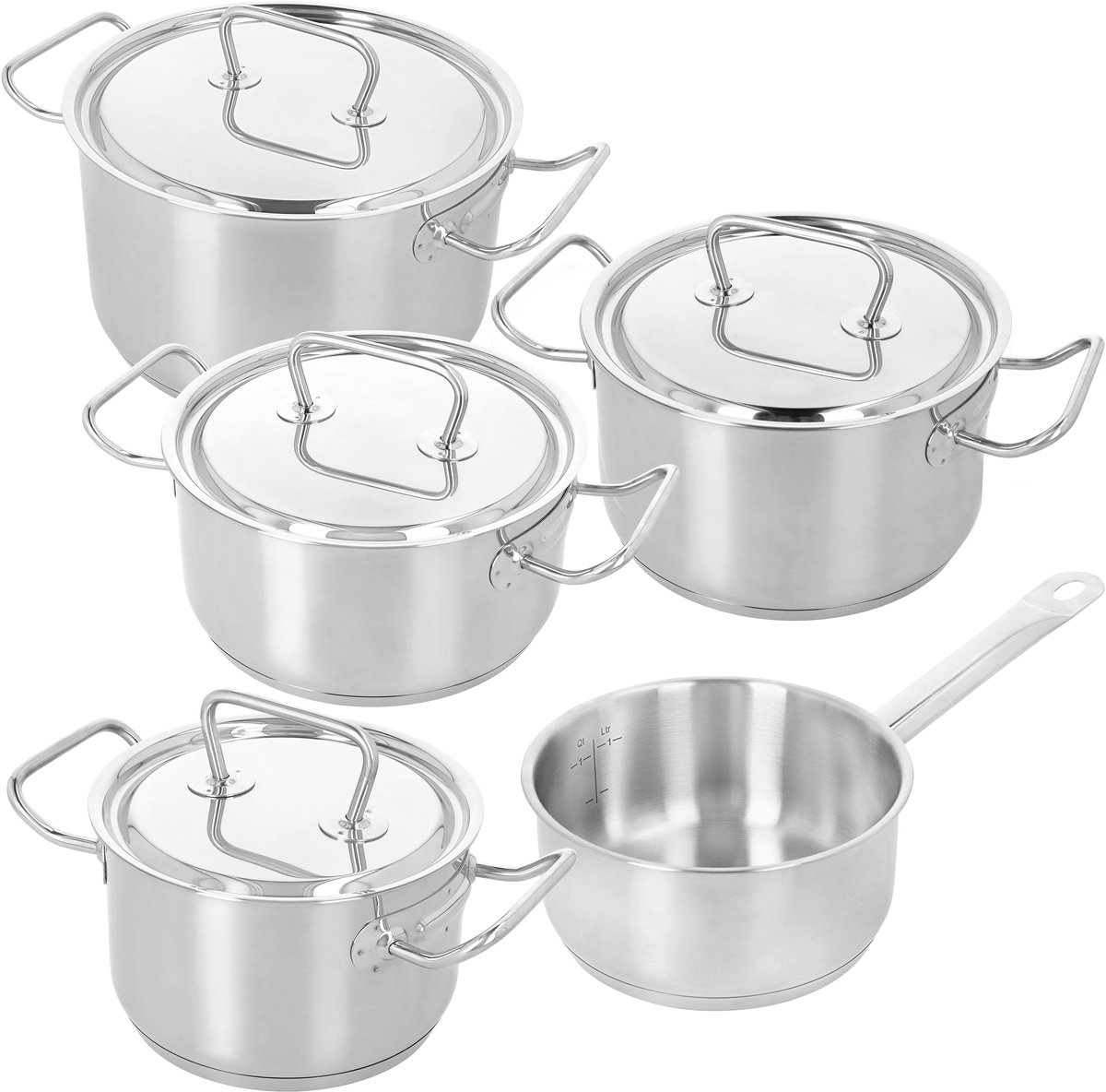 In deze set vind je meerdere maten voor verschillende taken: van soepen en sauzen tot sudderen en opwarmen. Kort verdict: een solide, multifunctionele set voor wie duurzame roestvrijstalen pannen wil die op alle warmtebronnen werken.