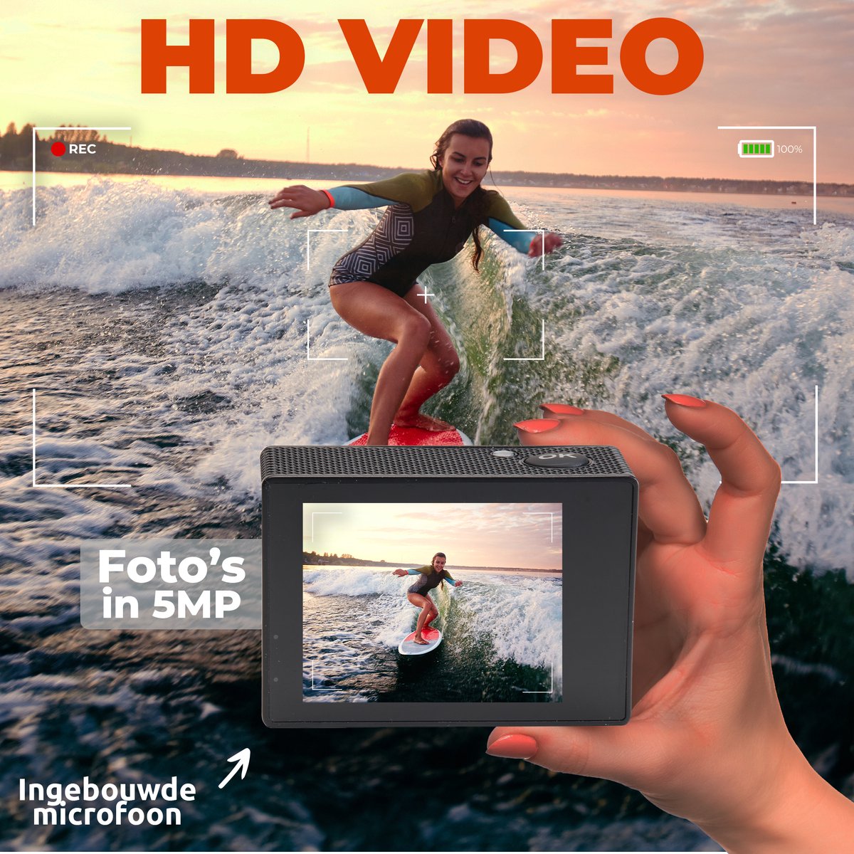 - Recreatieve watersporters en vakantiegangers die direct uit de doos willen filmen, dankzij de meegeleverde duikbehuizing en mounts.