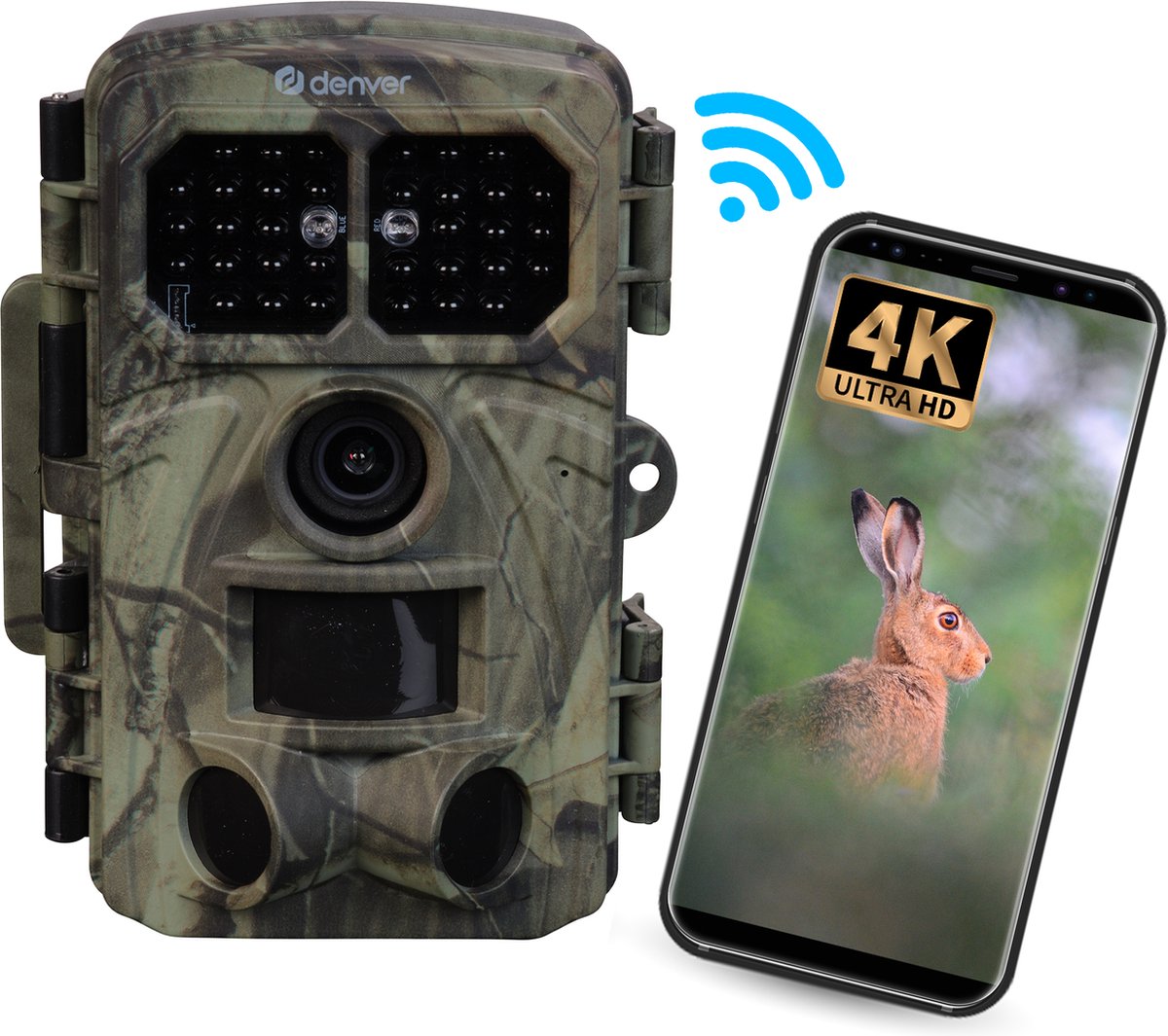 De Denver WCT8026 is een digitale wildcamera gericht op hobby-natuurwaarnemers, terreinbeheerders en iedereen die op afstand beelden wil vastleggen van dieren of een terrein. Het toestel combineert WiFi-verbinding met een liveview-functie, nachtzicht met 34 stuks 940 nm IR-LED’s en maximale resoluties die tot 4K-video en 48MP-foto’s (geïnterpoleerd) reiken. De camera werkt op 8 x AA-batterijen en heeft een IP65‑behuizing voor buitentoepassingen.