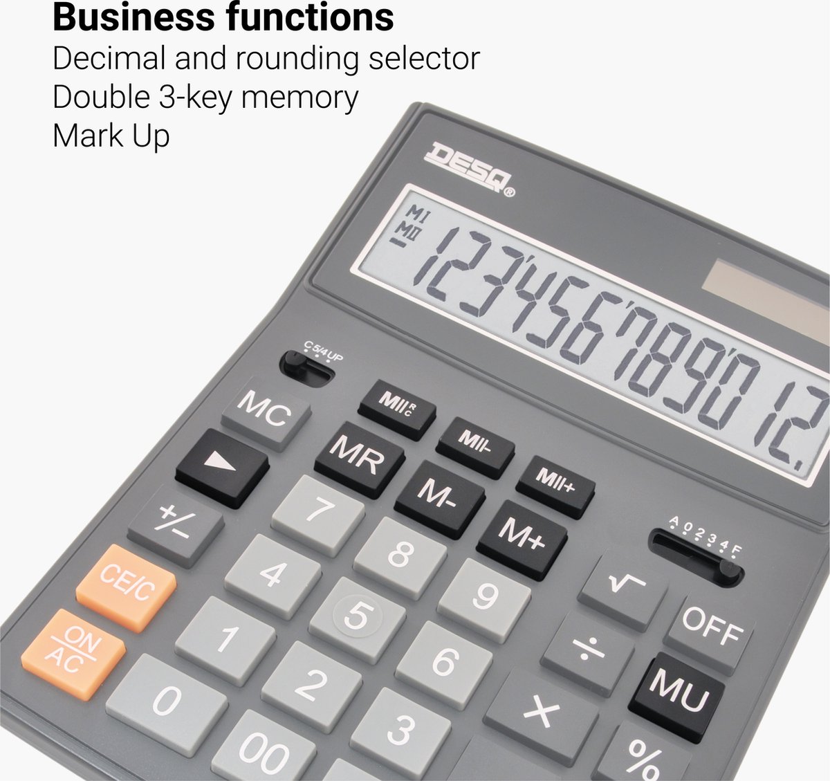 Specificaties: DESQ® 30444 Bureau Rekenmachine groot review: 12 cijfers, stevig