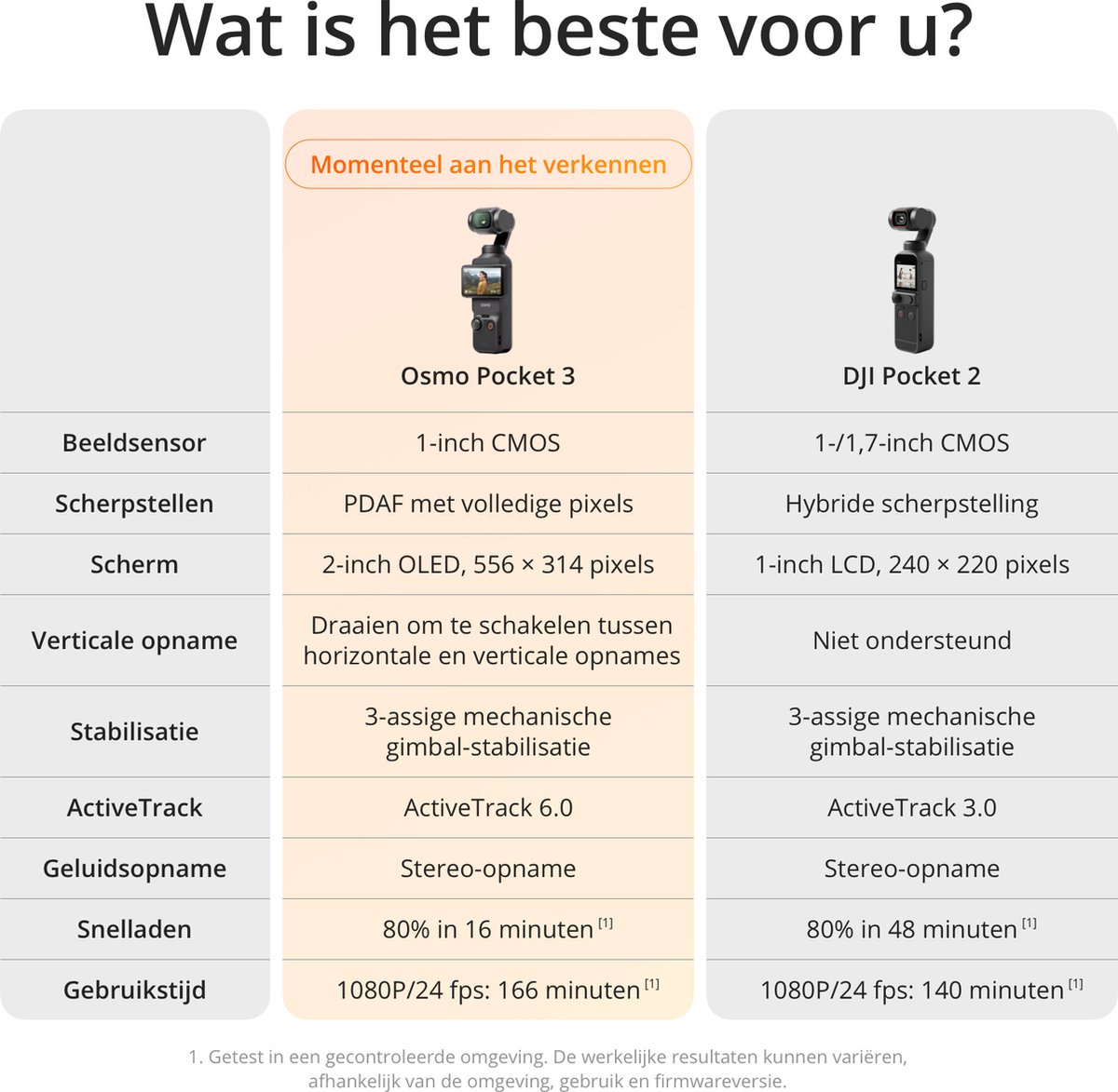 Als je waarde hecht aan draagbaarheid zonder te veel concessies in beeldkwaliteit, is de Osmo Pocket 3 het overwegen waard. Controleer bij aankoop de volledige lijst met accessoires en let op ontbrekende fysieke specificaties als die voor jou doorslaggevend zijn.