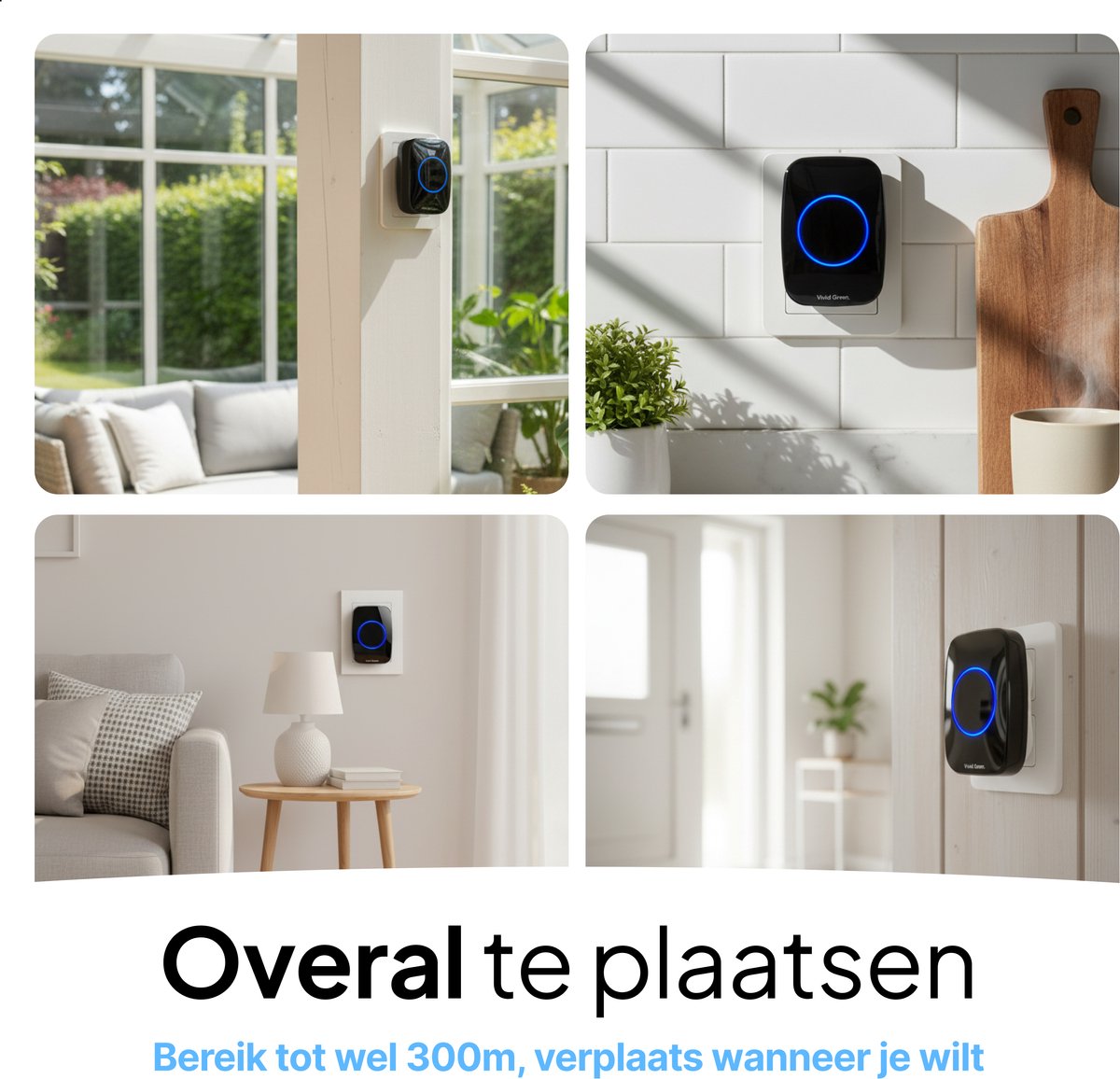 Een extra tip: kies bij voorkeur een stopcontact op oorhoogte of in een ruimte waar geluid goed verspreidt. In een hal klinkt een bel bijvoorbeeld vaak anders dan in een woonkamer met veel gordijnen of vloerbedekking.