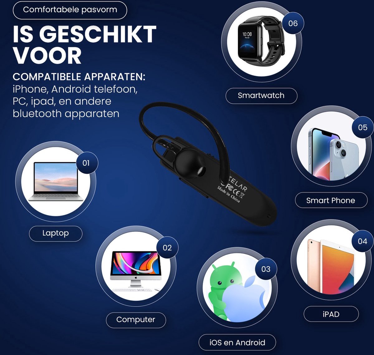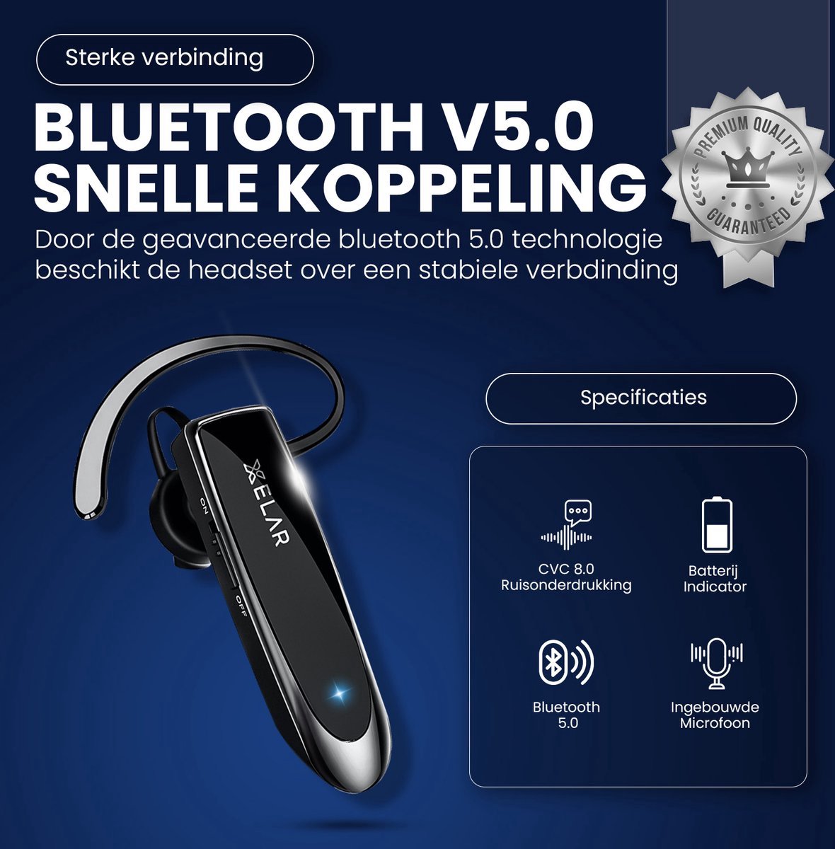 Overzicht:De Xelar Type One headset is een compacte in-ear headset voor Nederlandse gebruikers die veiliger willen bellen onderweg. Met 24 uur gesprekstijd blijf je langdurig bereikbaar zonder vaak op te laden.