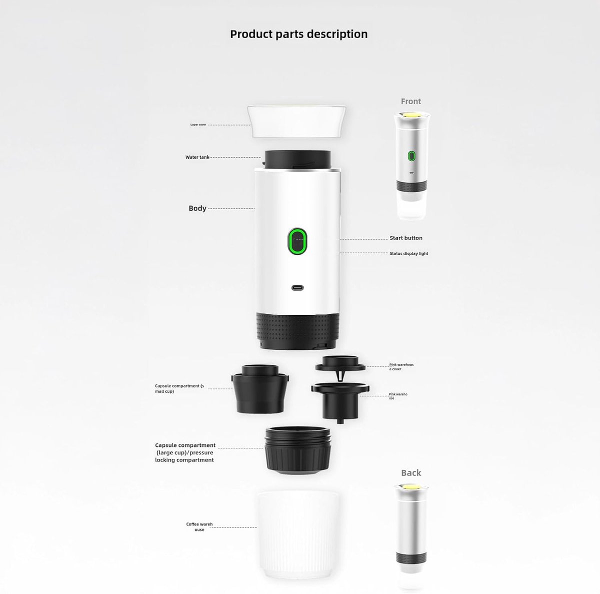 Overzicht:De 3-in-1 draagbare espressomachine is de ideale metgezel voor Nederlandse koffieliefhebbers die onderweg veelzijdigheid en gemak willen. Met een inhoud van 60 ml zet dit compacte apparaat zowel gemalen koffie als capsules, thuis of onderweg.