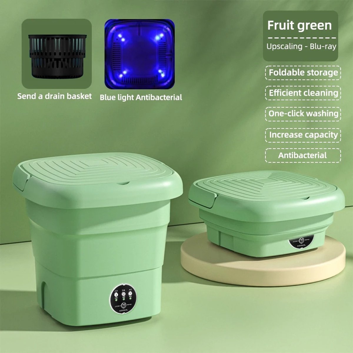 De Mini Opvouwbare Wasmachine met drogerfunctie is een ultracompacte, lichtgewicht wasoplossing voor kleine ruimtes en onderweg. Hij is ontworpen voor wie efficiënt wil wassen zonder een grote, vaste wasmachine in huis te halen. Dankzij het opvouwbare ontwerp berg je hem na gebruik zo op in een kast, onder een bed of in een koffer.