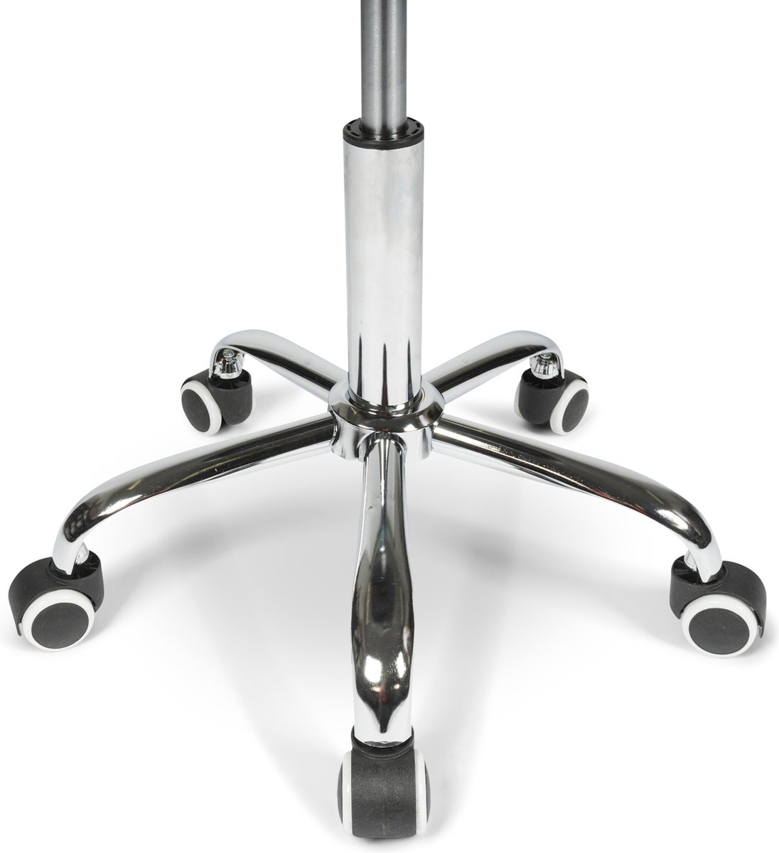 De zwenkwieltjes rollen geruisloos en soepel, waardoor je je gemakkelijk kunt verplaatsen zonder op te staan. Dit verhoogt de efficiency tijdens behandelingen of knipbeurten en voorkomt dat je telkens moet ophouden om op te staan. Wielen met kunststof loopvlak zijn ideaal op harde vloeren en makkelijk te onderhouden.