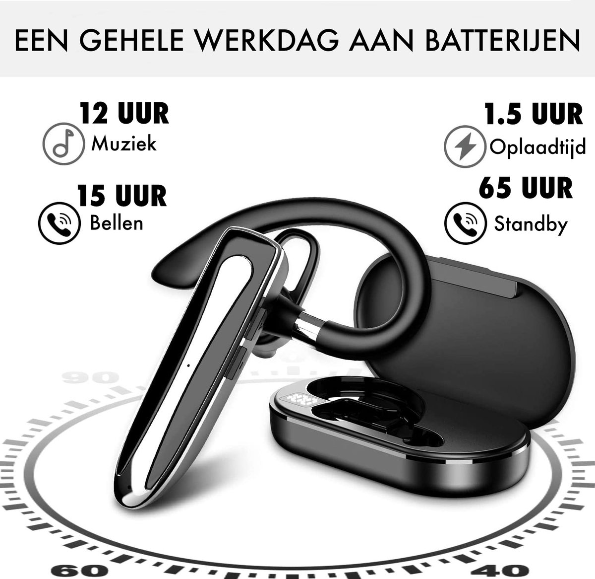 Let op: echte gebruikstijd hangt af van volume, bluetooth-signaal en belkwaliteit.