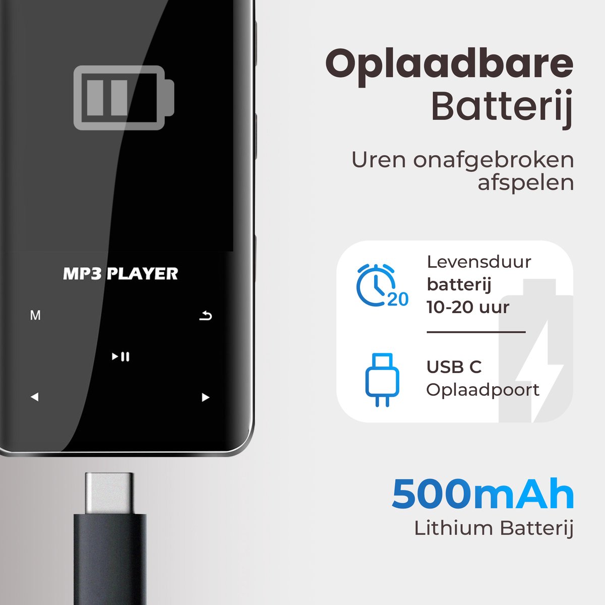 De speler heeft 32GB interne opslag, genoeg voor duizenden mp3-bestanden, podcasts of vele uren aan luistermateriaal (source: listing, checked 2025). Voordeel: je hoeft geen losse geheugenkaart te kopen of continu bestanden te verwisselen. Dit is bijzonder handig voor lange reizen of wie veel luistercontent wil meenemen zonder afhankelijkheid van cloud en streaming.