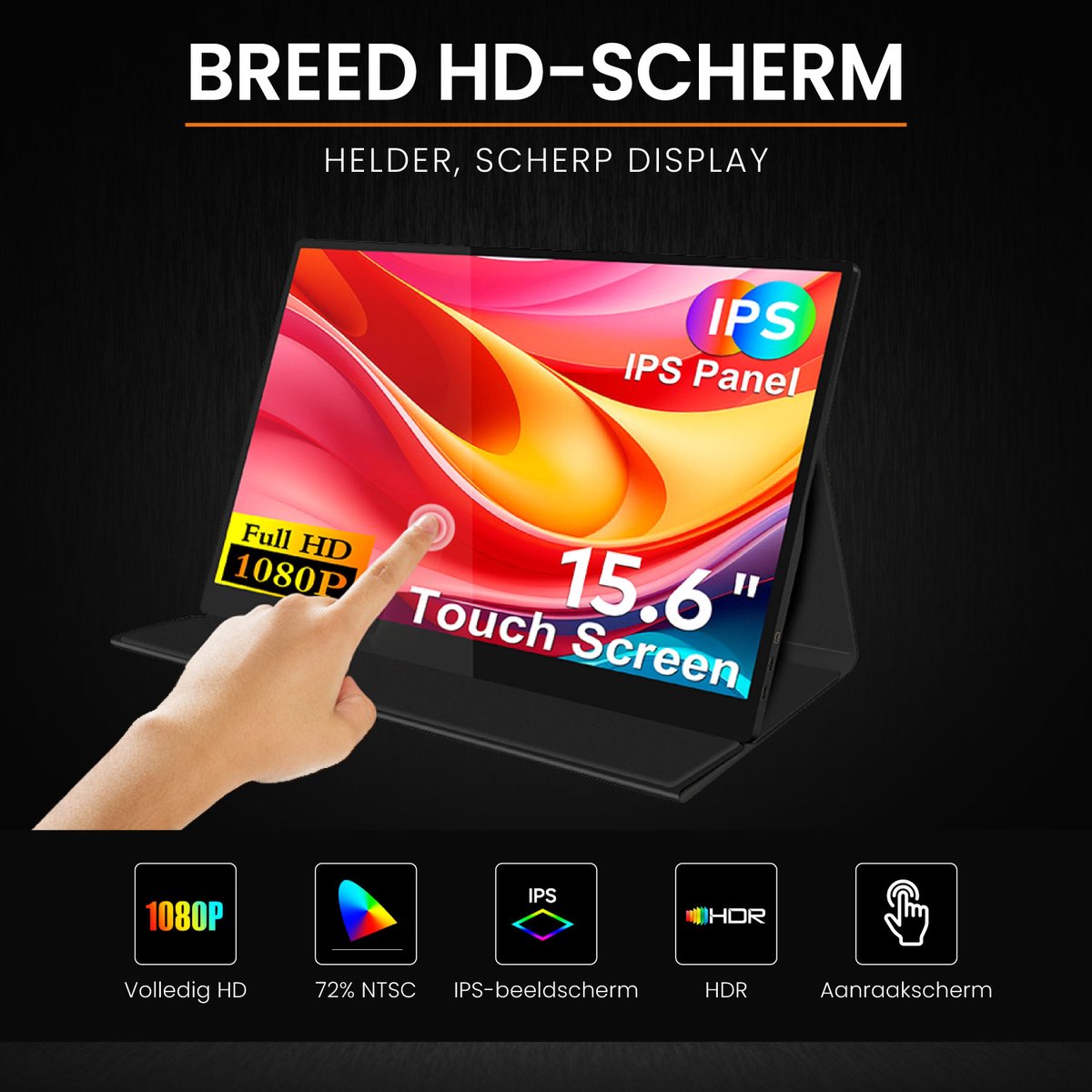 De Elcostar Touchscreen Portable Monitor is een draagbaar 15,6‑inch Full HD aanraakscherm dat je productiviteit onderweg en op kantoor direct verhoogt. Met intuïtieve bediening zonder muis of toetsenbord en compatibiliteit met laptop, tablet en spelcomputer werk je flexibeler waar je ook bent.