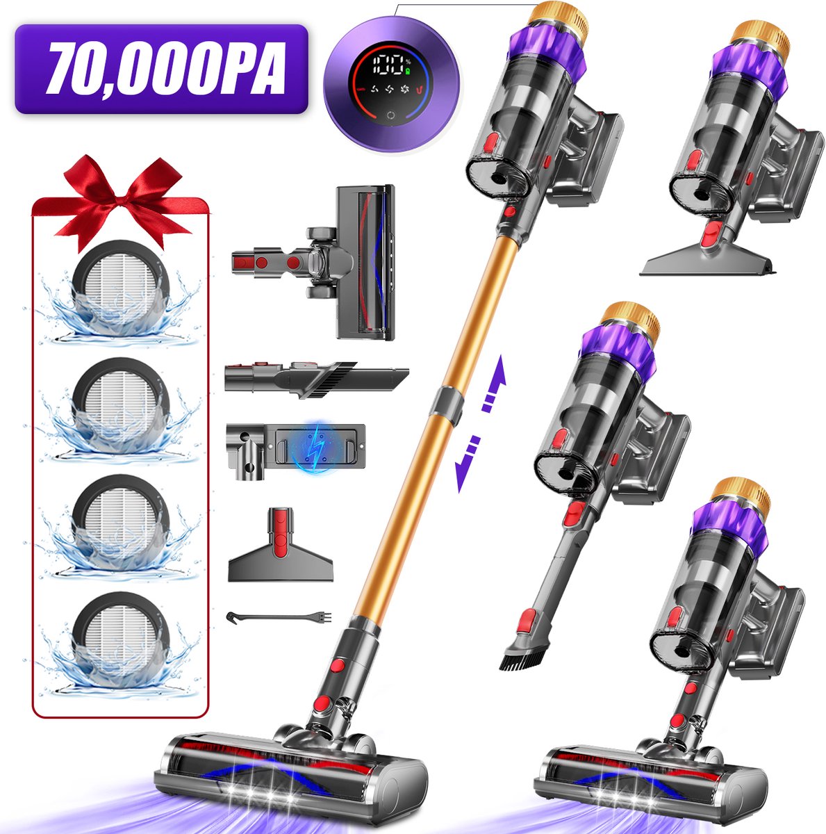 De Elekiatech steelstofzuiger draadloos is een krachtige, veelzijdige steelstofzuiger die is ontwikkeld voor huishoudens met huisdieren, harde vloeren en een hoge hygiënenorm. Met een opgegeven zuigkracht tot 70.000 Pa, een 7-laags HEPA-filtersysteem met geurfunctie en een slim LED-display, is dit een strak vormgegeven hulp voor dagelijks schoonhouden zonder snoer.