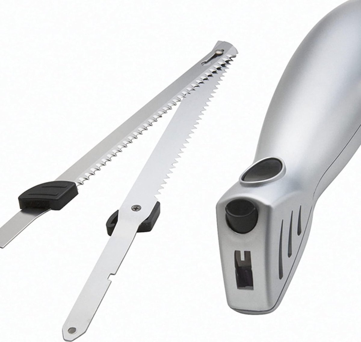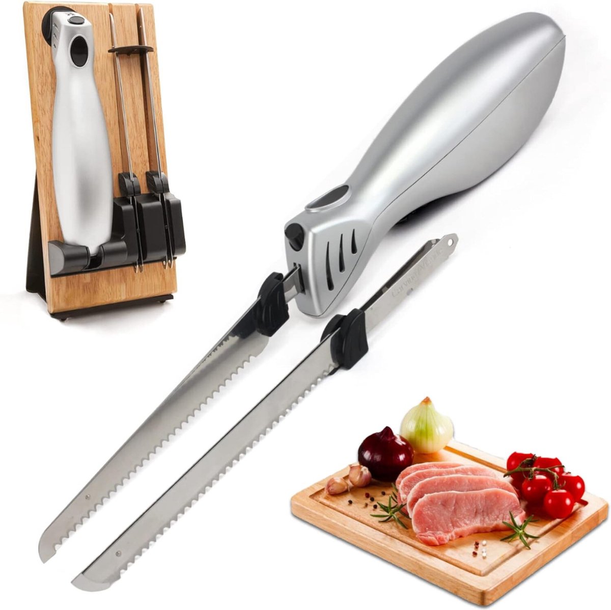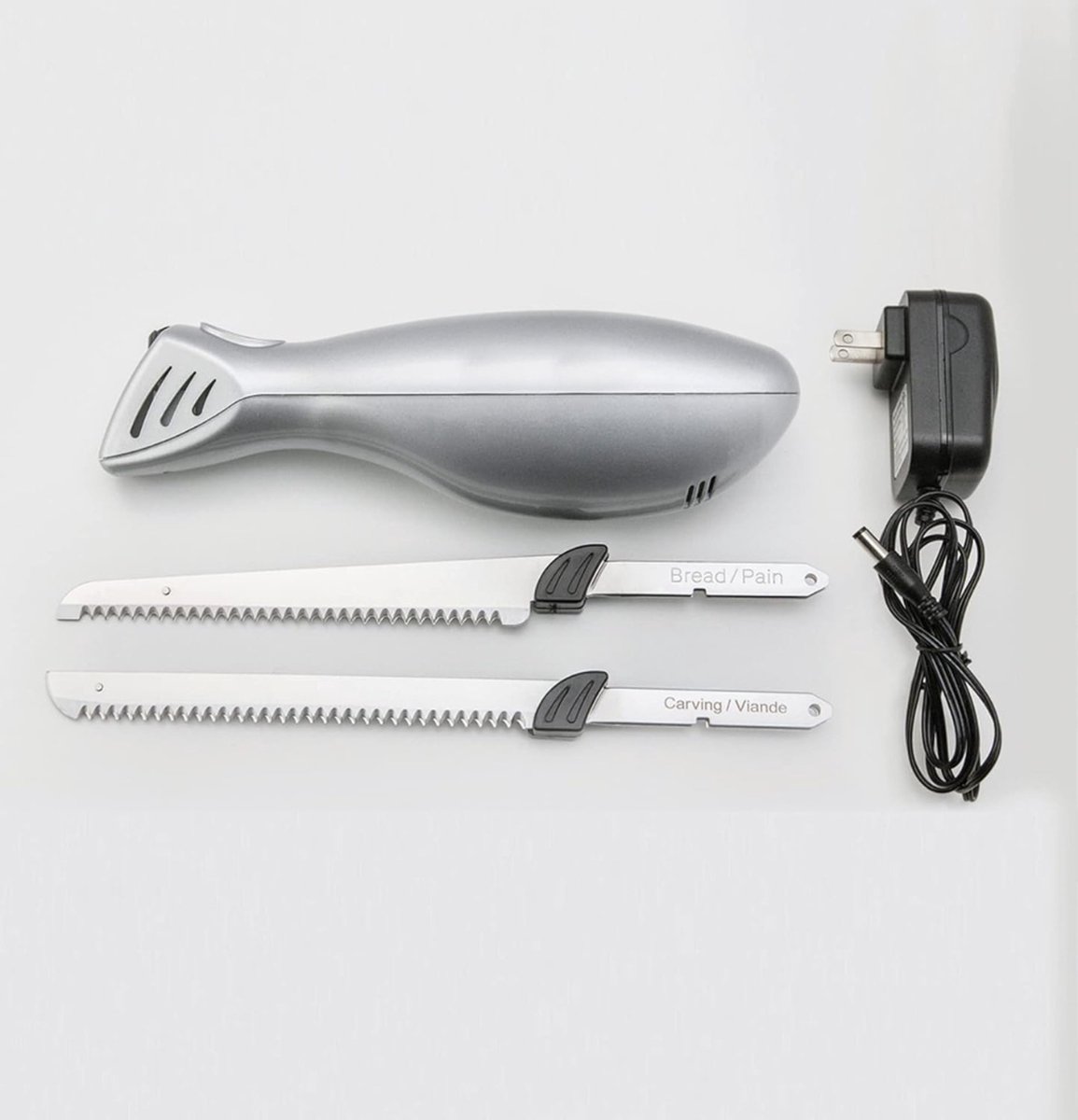 Dit draadloze elektrische mes helpt huishoudens in Nederland sneller en gelijkmatiger snijden. Met roestvrijstalen messen en twee meegeleverde messensets ga je moeiteloos van brood tot diepvriesproducten. De 7,4 V lithiumbatterij laadt in 2 uur op.