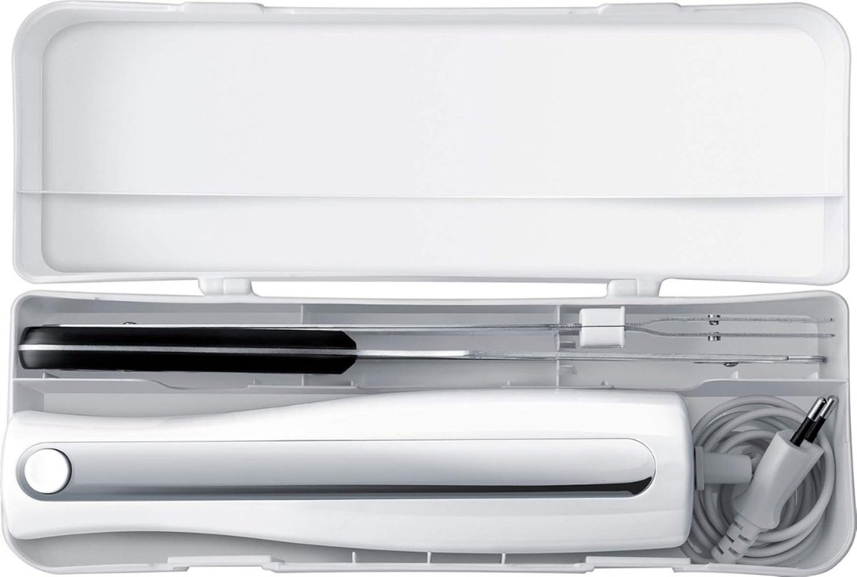 Dit elektrisch mes is de snelle hulp voor Nederlandse thuiskoks die tijd willen besparen. Dankzij roestvrijstalen messen en een meegeleverd universeel mes plus broodmes snijd je brood, vlees en groenten met constante precisie.