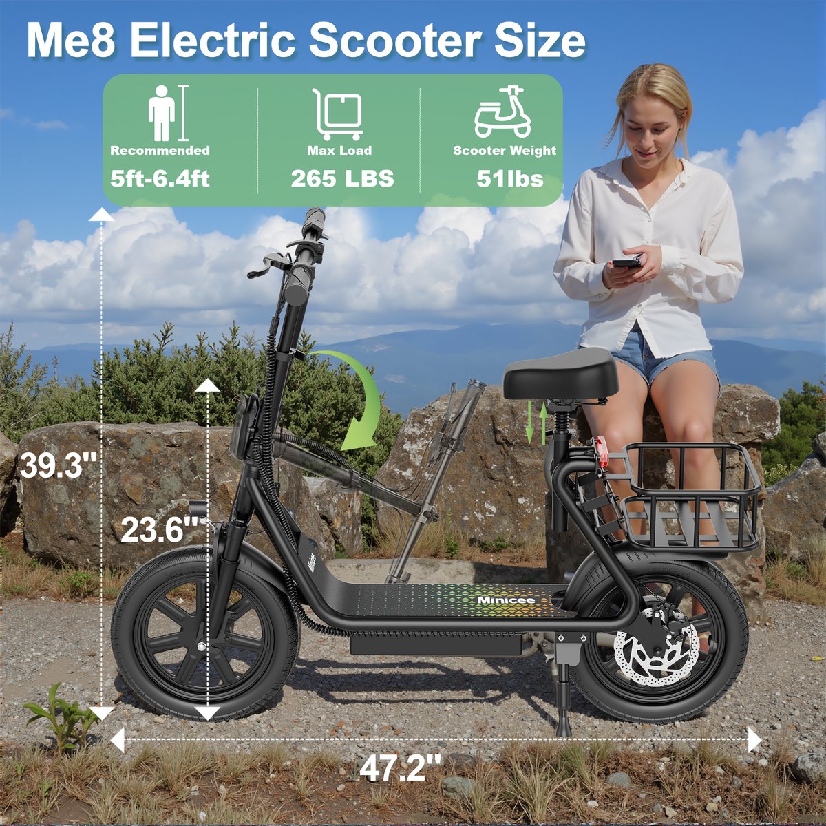 Dit is een opvouwbare elektrische scooter met zitting, bedoeld voor volwassenen die comfortabele ritten willen combineren met draagbaarheid. De scooter heeft een verstelbare, brede en ademende zitting, een 750W piekmotor, een 48V 10,4Ah lithium-ionaccu en een opvouwbaar stuur. Belangrijke opmerking in de listing: dit model is niet voorzien van ABE (COC en RDW), gebruik op openbare wegen en fietspaden kan volgens lokale regels beperkt of verboden zijn — controleer uw lokale wetgeving voordat u rijdt.