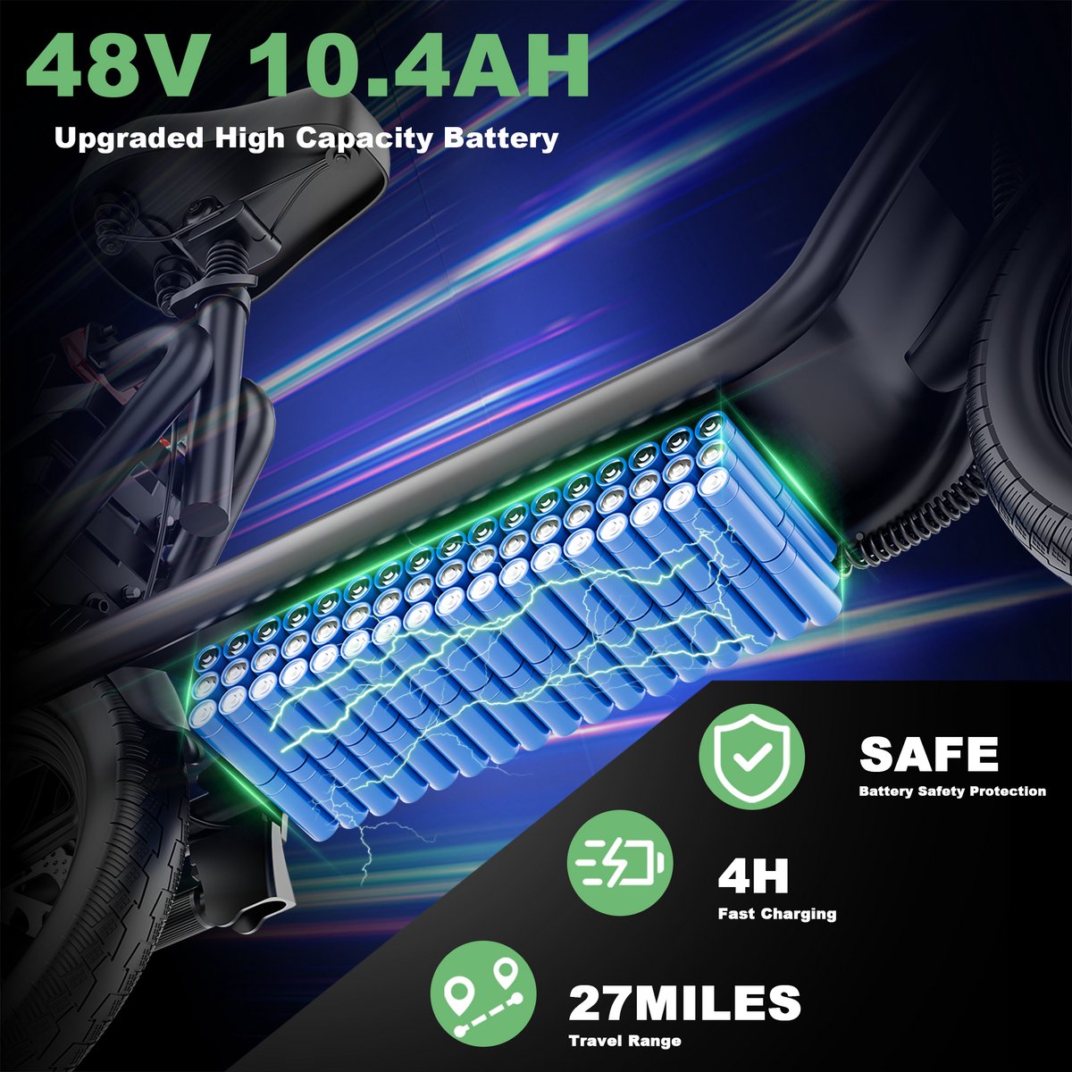 • Laad de 48V 10,4Ah lithium-accu in 5–6 uur voor dagelijks gebruik.
