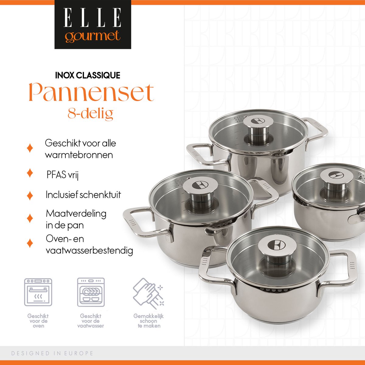 1x ELLE Gourmet Classique 8-delige Pannenset