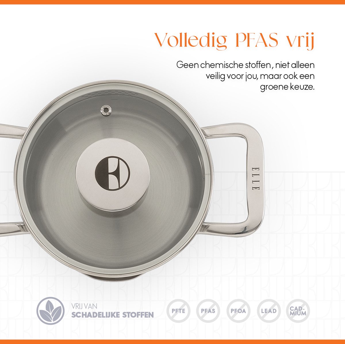 Specificaties: ELLE Gourmet Classique 4-delige RVS Pannenset review PFAS-vrij