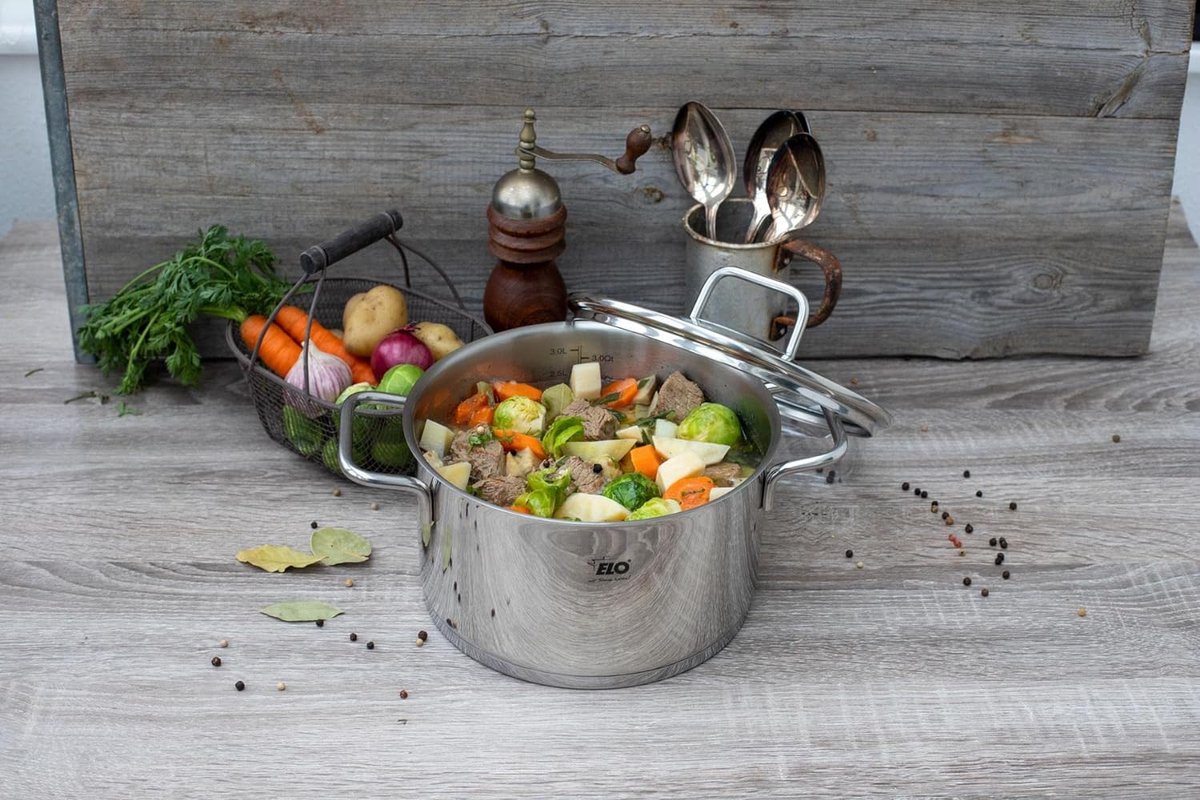 De Elo braadpan 20 cm is een compacte roestvrijstalen pan met glazen deksel, bedoeld voor kleinere huishoudens of kooktaken waarbij controle en behoud van smaak en vitamines belangrijk zijn. Je gebruikt hem bijvoorbeeld voor het sudderen van sauzen, het koken van pasta voor twee of het zacht garen van groenten.