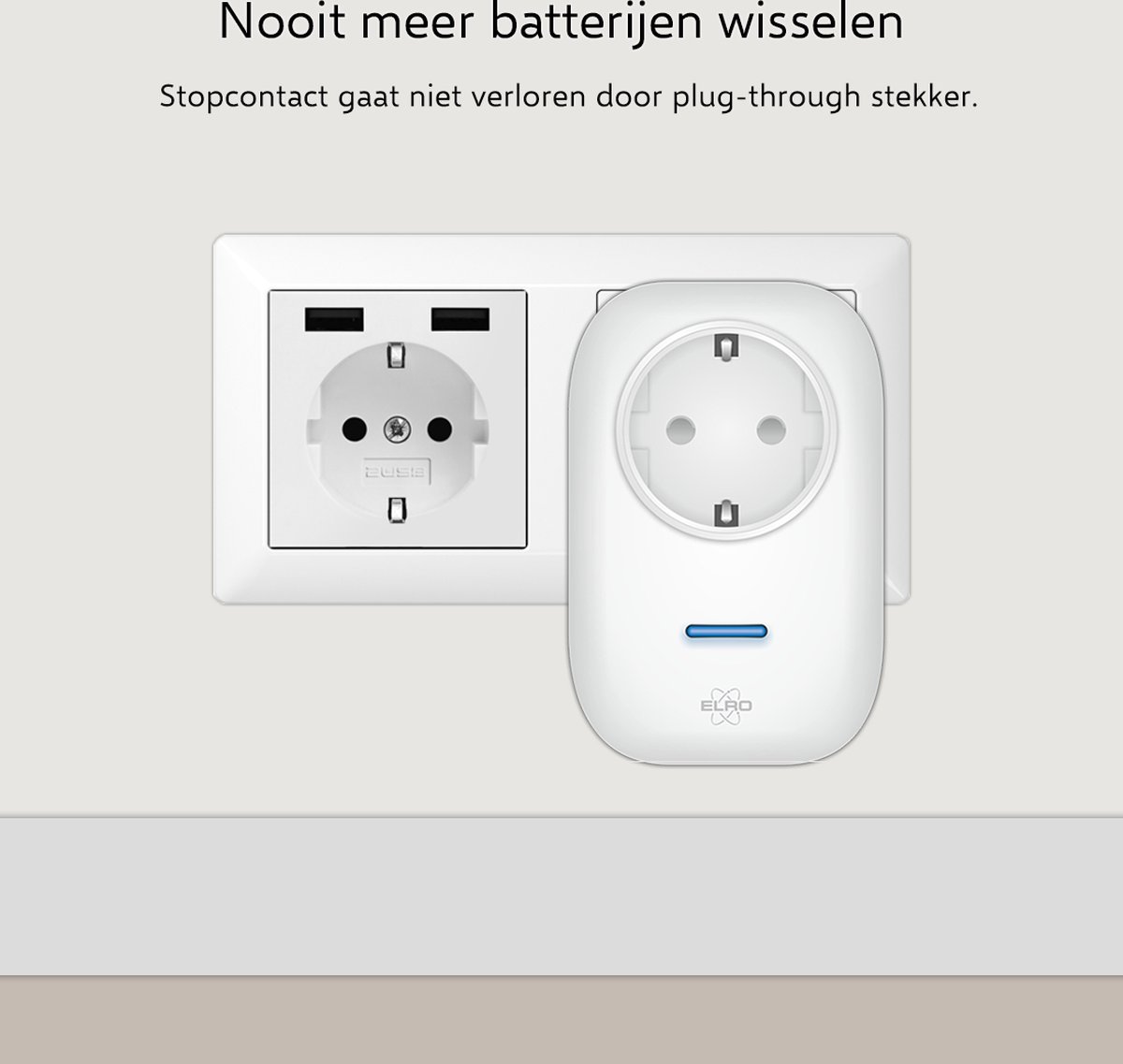 - Verlies geen stopcontact, door doorvoer‑stekkerontvanger met extra aansluiting.