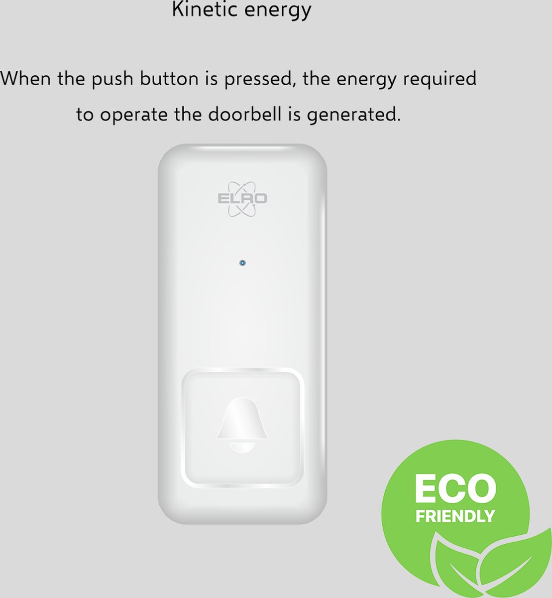 | Kinetische beldrukker zonder batterij: geen onderhoud en geen vervangkosten | Exacte afmetingen en kleur van beide units niet volledig gespecificeerd |