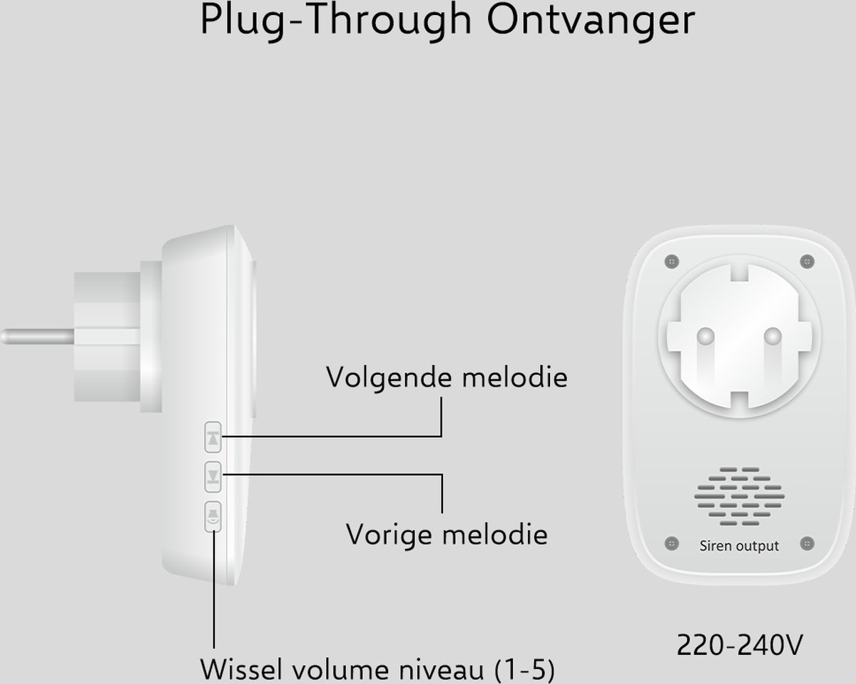 De ontvanger steek je rechtstreeks in het stopcontact. Dankzij de doorvoerfunctie blijft het stopcontact beschikbaar voor een ander apparaat. Dit lijkt een klein detail, maar in woonkeukens en werkhoeken zijn vrije stopcontacten schaars. Met de plug-through uitvoering hoef je niet te kiezen tussen je deurbel en bijvoorbeeld een oplader of koffiezetapparaat. Het is precies dat soort doordacht ontwerp dat de ELRO DB4000 in het dagelijks gebruik prettig maakt.