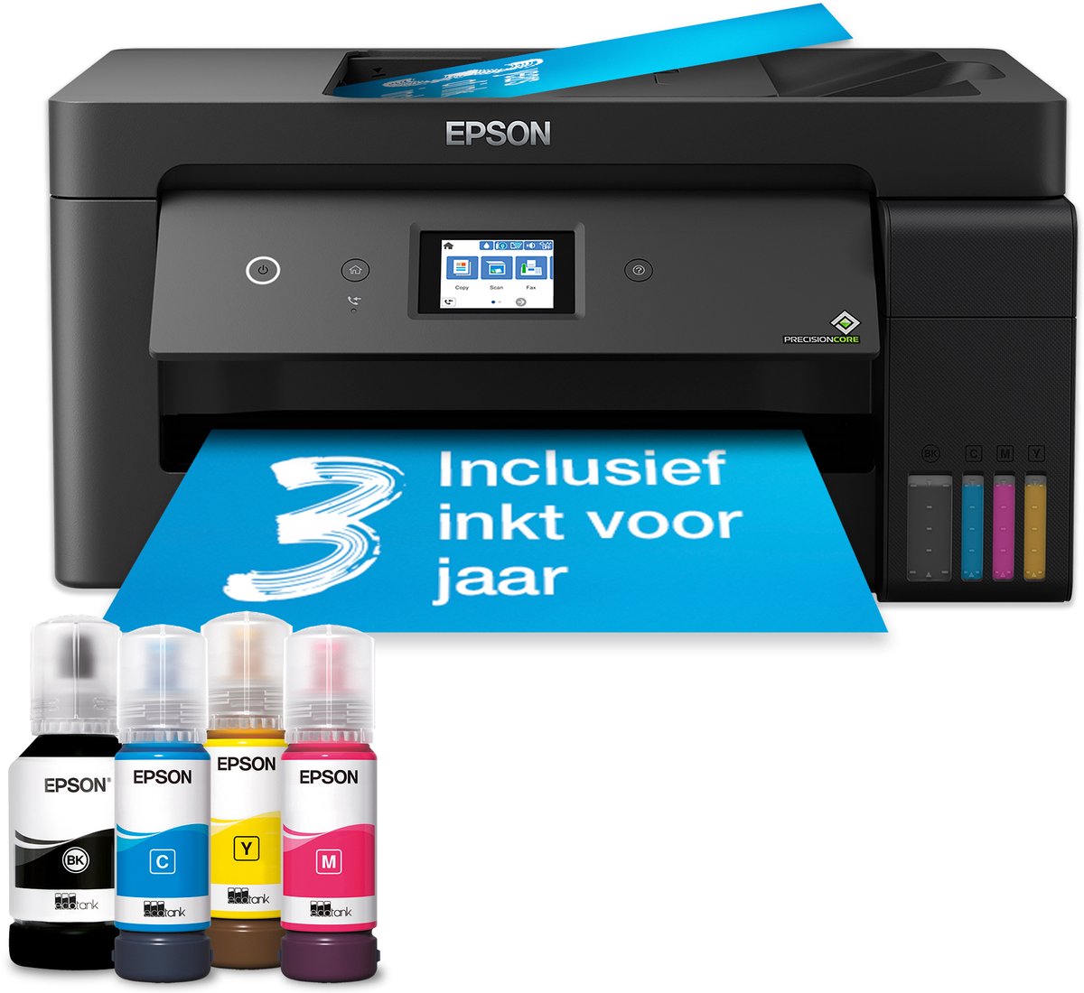 De Epson EcoTank ET-15000 is een A3+-inkjet all-in-one met navulbare inkttanks voor wie veel en voordelig wil printen. Hij print tot A3 via de achterinvoer en kan op A4-formaat scannen, kopiëren en faxen. Dankzij de grote inkttanks en meegeleverde flessen druk je jarenlang af zonder cartridges te vervangen.