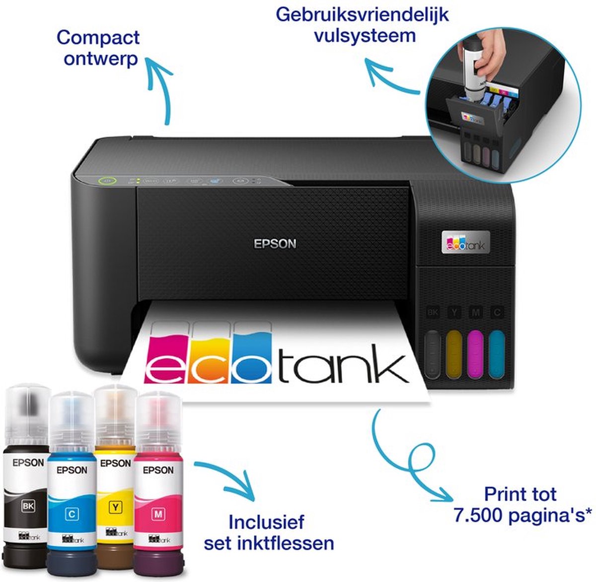 Specificaties: Epson EcoTank ET-2860 – All-in-One Inkttank Printer- Zwart test zuinig, Wi-Fi