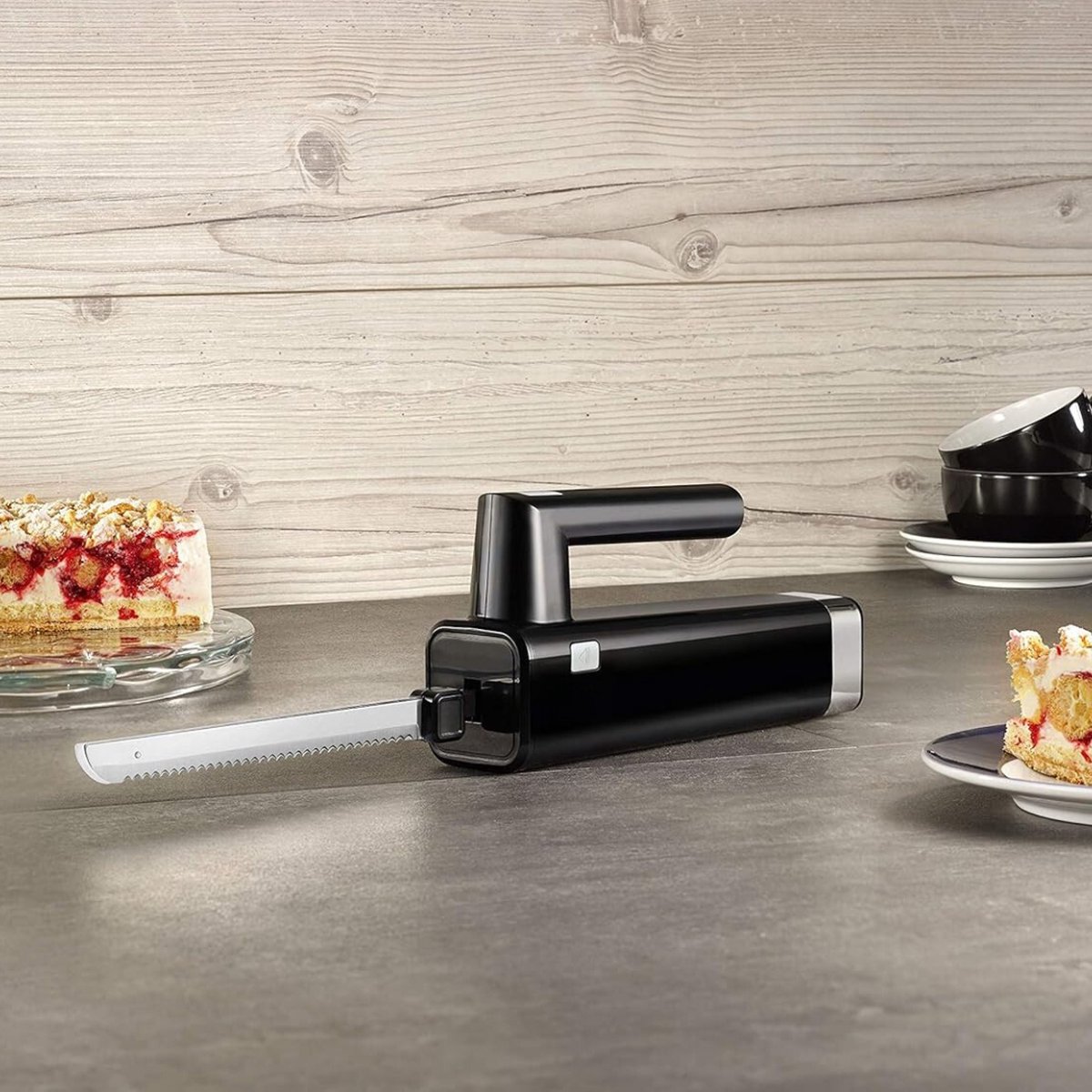 De vermelding noemt brood, cake en vlees expliciet. Dat zijn precies de scenario’s waar elektrische messen uitblinken. Brood behoudt zijn vorm; je krijgt gelijkmatige boterhammen die prettig roosteren en goed passen in broodtrommels. Zachte cakes scheur je niet kapot. Groot vlees trancheren wordt eenvoudiger en sneller, zeker wanneer je voor eters kookt.