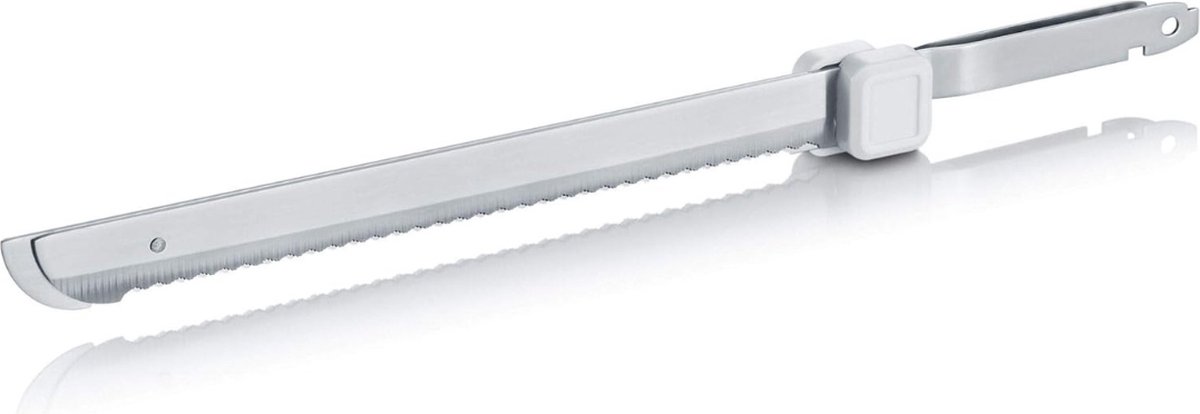 Zoek je vooral tijdwinst en nette plakken zonder gepruts met een kartelmes? Dan is dit een praktische keuze. De productbeschrijving benadrukt een sterke motor en roestvrijstalen bladen, waardoor het mes veelzijdig inzetbaar is voor brood, cake en vlees.