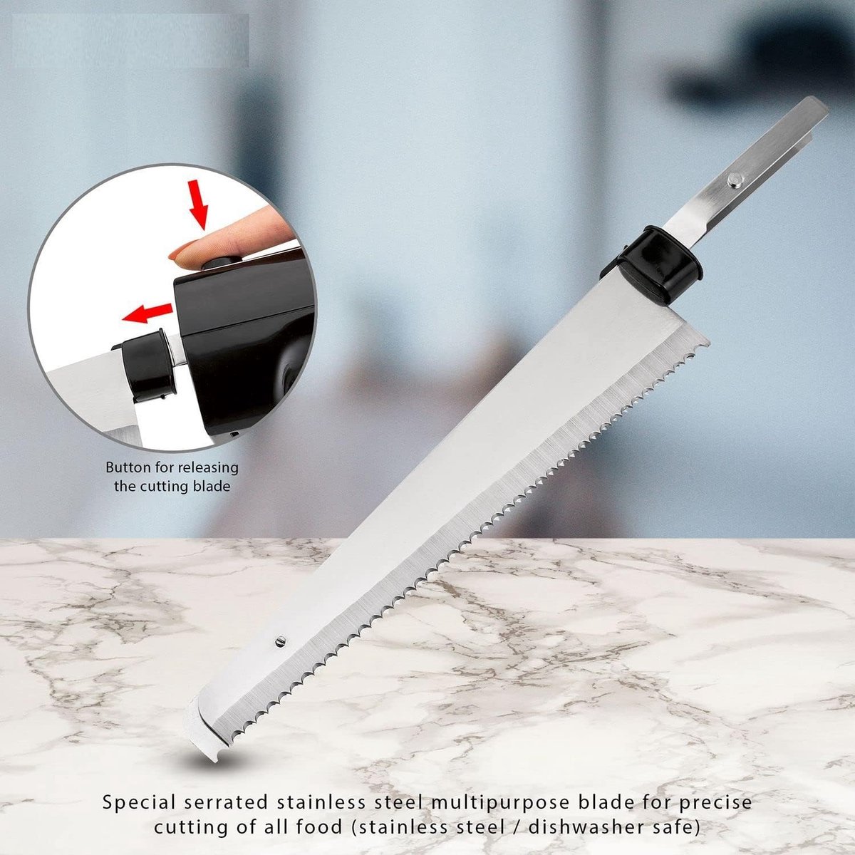 Dit elektrisch mes helpt Nederlandse huishoudens sneller en netter snijden, van brood tot gyros. De 120 W motor en roestvrijstalen, vaatwasmachinebestendige messen leveren consistente resultaten. Inclusief opbergdoos voor veilige, compacte opslag.