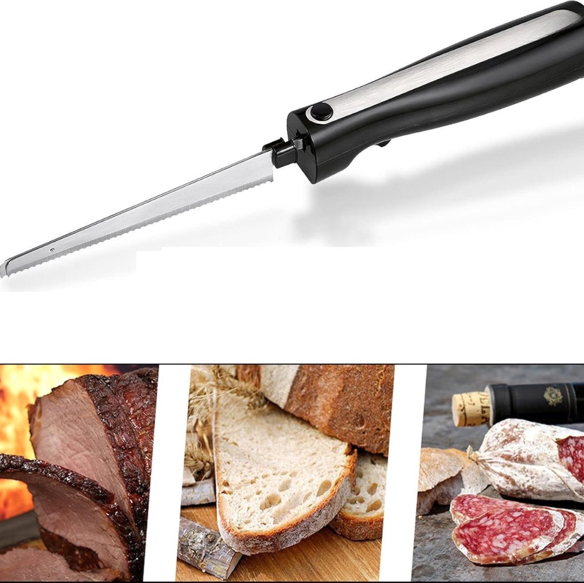 De fabrikant positioneert dit model als een alleskunner: van braden tot brood, cake, doner en gyros. Dat is precies het terrein waar een elektrisch mes uitblinkt. Je hoeft niet met kracht te zagen; de getande bladen doen het werk. Daardoor: