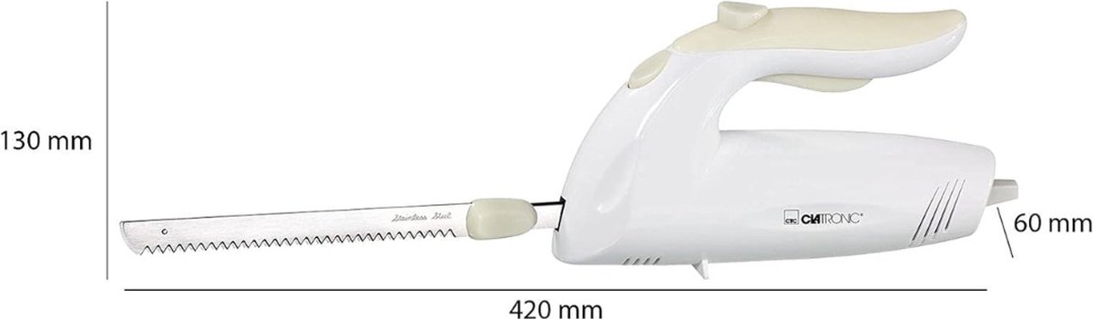 Volgens de fabrikant is de motor 150 W. Dat is ruim voldoende voor de meeste huishoudelijke snijtaken en het verklaart waarom dit elektrisch mes merkbaar sneller werkt dan handmatig snijden. De winst merk je bijvoorbeeld wanneer je een vers brood met stevige korst netjes in gelijke sneetjes wilt delen zonder het brood te pletten. Ook een groot braadstuk snijd je snel in porties, wat warmteverlies beperkt en de borden snel naar tafel laat gaan.