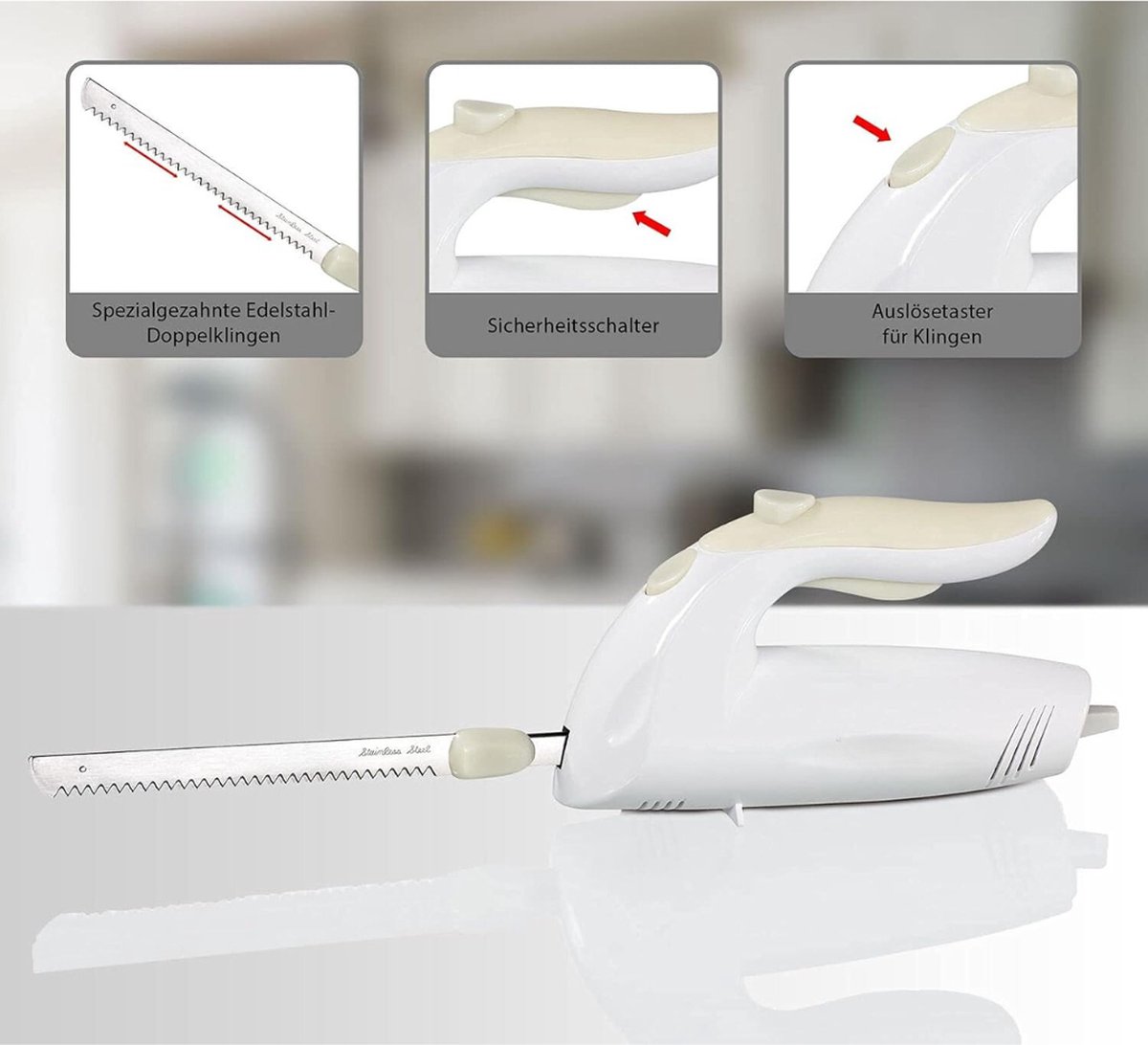 Ons elektrisch mes bespaart Nederlandse huishoudens tijd bij brood, braadstuk, döner en gyros. De 150 W motor en roestvrijstalen, speciaal getande messen zorgen voor snelle, gelijkmatige sneden.
