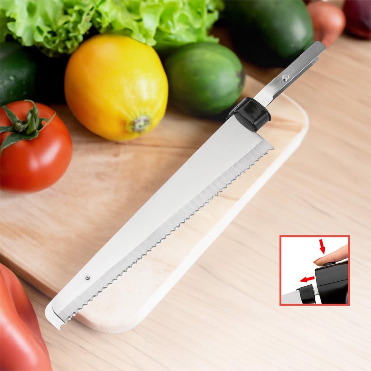 Dit is een elektrische snijoplossing voor thuis die met een 120 watt motor, een gekarteld blad van roestvrij staal en extra veiligheidsfuncties is ontworpen om soepel door brood, vlees, groenten en zelfs diepvriesproducten te gaan. De combinatie van laag geluids- en trillingsniveau en eenvoudige reiniging maakt het een praktisch hulpmiddel voor dagelijks gebruik.