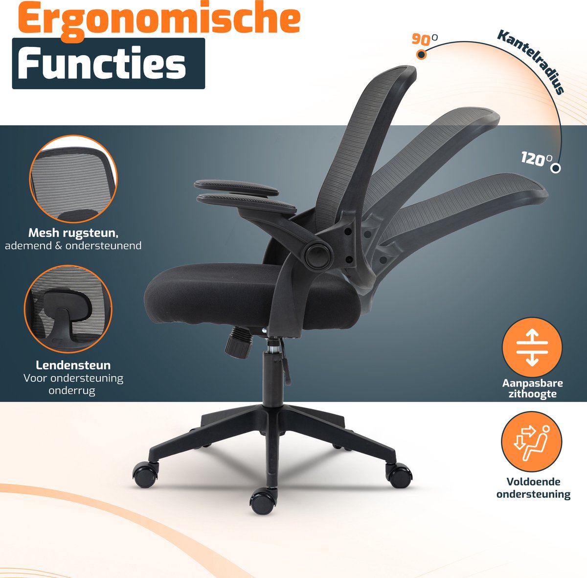 • Verbeter je houding dankzij lendensteun; ondersteunt de onderrug tijdens lange werktijden.