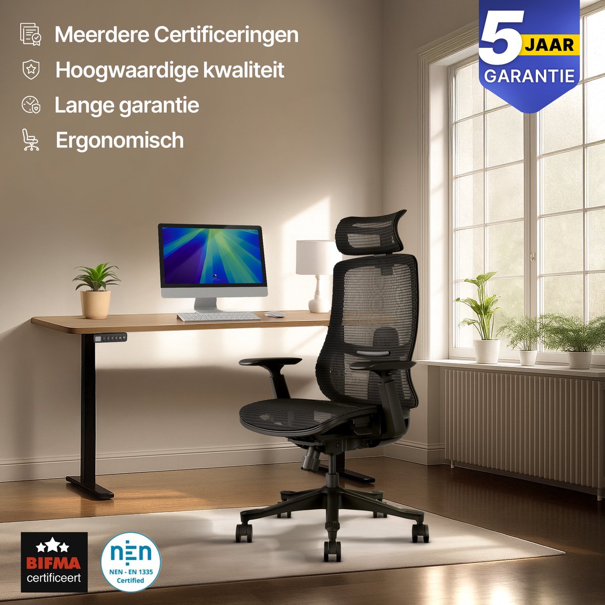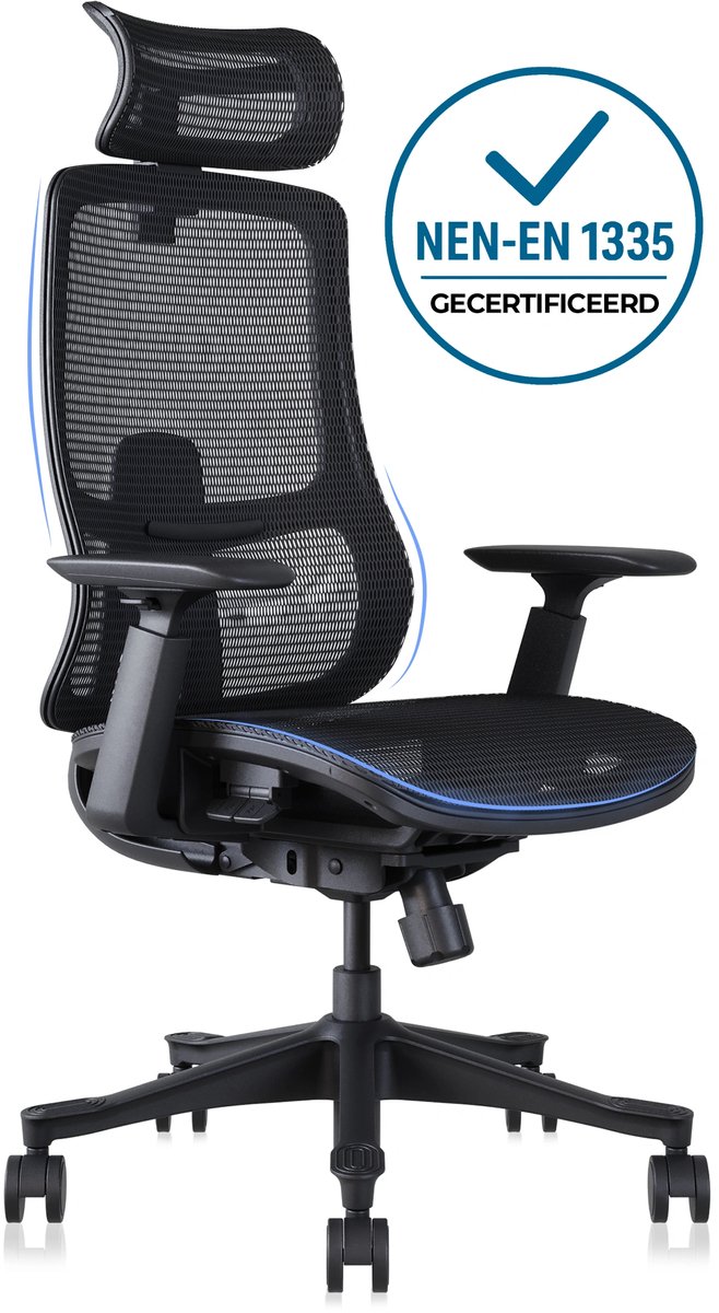 - Werk comfortabel urenlang met ergonomische zitting en verstelbare armsteunen.