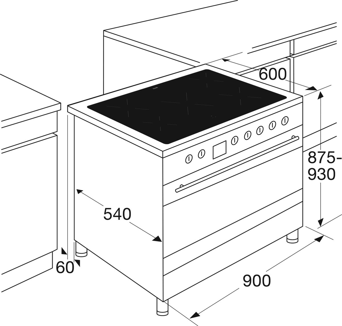 - Keukens met weinig breedte. Met 90 centimeter vraagt dit model meer frontbreedte dan standaard fornuizen.