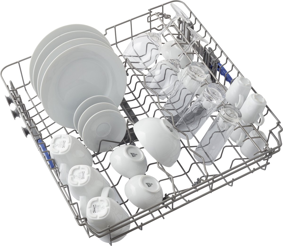 - Plaats kwetsbare glaswaren op de bovenkorf en gebruik het glasprogramma voor voorzichtige reiniging.