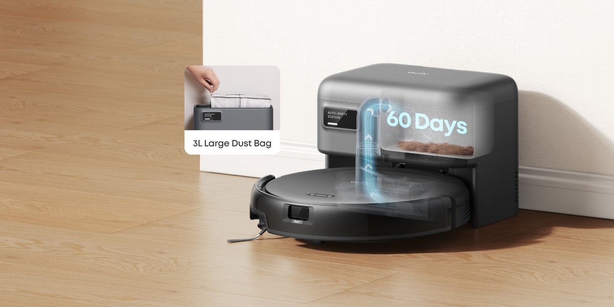 | Automatisch leegstation met 3 liter stofzak; tot wel 60 dagen weinig onderhoud (volgens de fabrikant/listing). | Verbruiksartikelen: stofzakken moeten periodiek worden vervangen. |