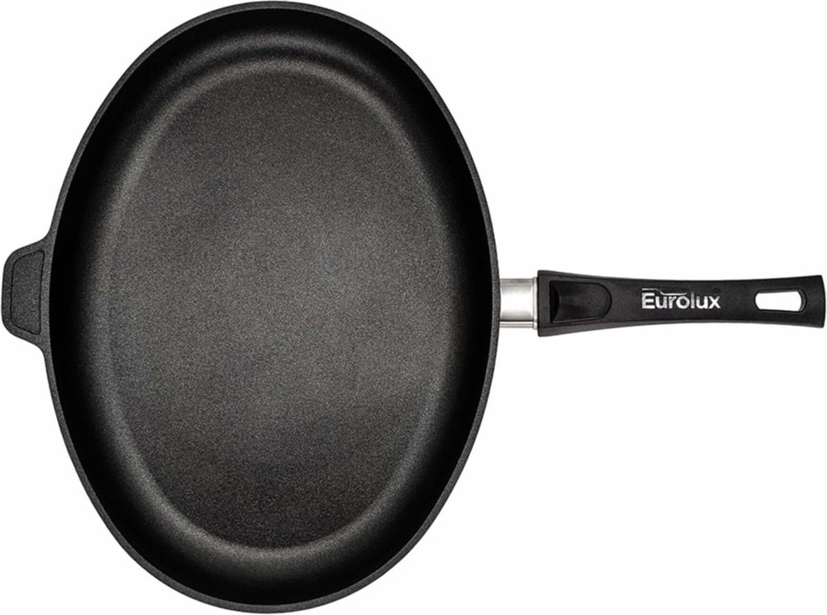 De Eurolux pan is duidelijk gebouwd met duurzaamheid als uitgangspunt. Het lichaam heeft een zwarte onderkant die, volgens de fabrikant, beter warmte absorbeert en daardoor sneller opwarmt. De pan is afgewerkt met de LuxTec® anti-aanbaklaag, een dikke coating die bedoeld is om intensief gebruik met niet-scherpe metalen keukengerei mogelijk te maken (bijvoorbeeld een garde). De exacte materiaalsoorten van het basismetalen bodem- en wandmateriaal zijn niet gespecificeerd.