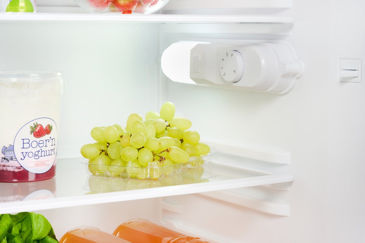 Met 160 liter netto koelruimte richt je de binnenkant zó in dat dagelijkse basics en verswaren makkelijk te vinden zijn: flessen melk en sap, een week aan groenten, bakjes maaltijdsalades en zuivelproducten. Het voordeel in het dagelijks gebruik is duidelijk: minder stapelen, beter zicht, en minder kans dat producten achterin uit het zicht raken. Dit is vooral gunstig voor wie twee à drie keer per week boodschappen doet en waarde hecht aan een nette indeling (bron: listing, gecontroleerd 2025).