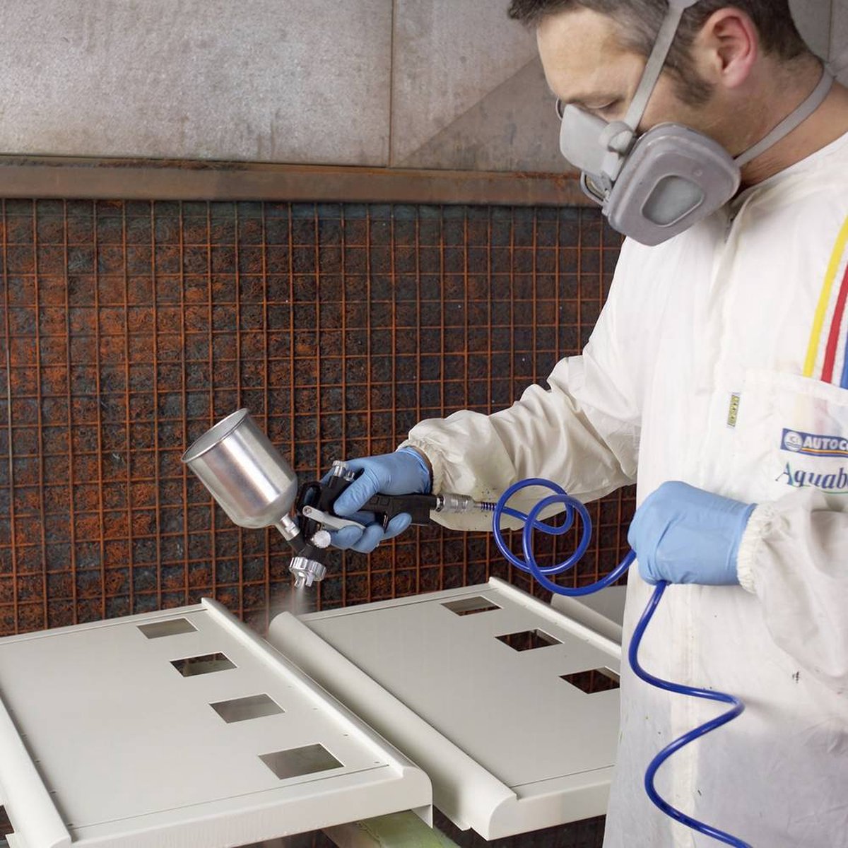 - Werk stofarm, maskeer zorgvuldig. Begin met test op een oud paneel om patroon en druk te verfijnen. Kies een bredere waaier voor grote vlakken en verlaag licht de druk als er teveel mist ontstaat. Dunne, opeenvolgende lagen minimaliseren zakkers en sinaasappel.