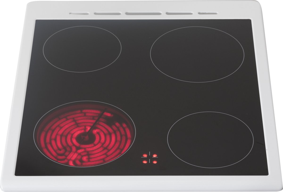 De Fitelli FK5001WIT combineert een keramische glasplaat bovenop met een oven in de plint. Keramisch glas staat bekend om zijn vlakke, egale kookoppervlak. Dat heeft twee praktische voordelen: pannen staan stabiel en de plaat is vlot schoon te maken met een glas‑schraper en een geschikte reiniger. Ook oogt het strak in een moderne keuken.