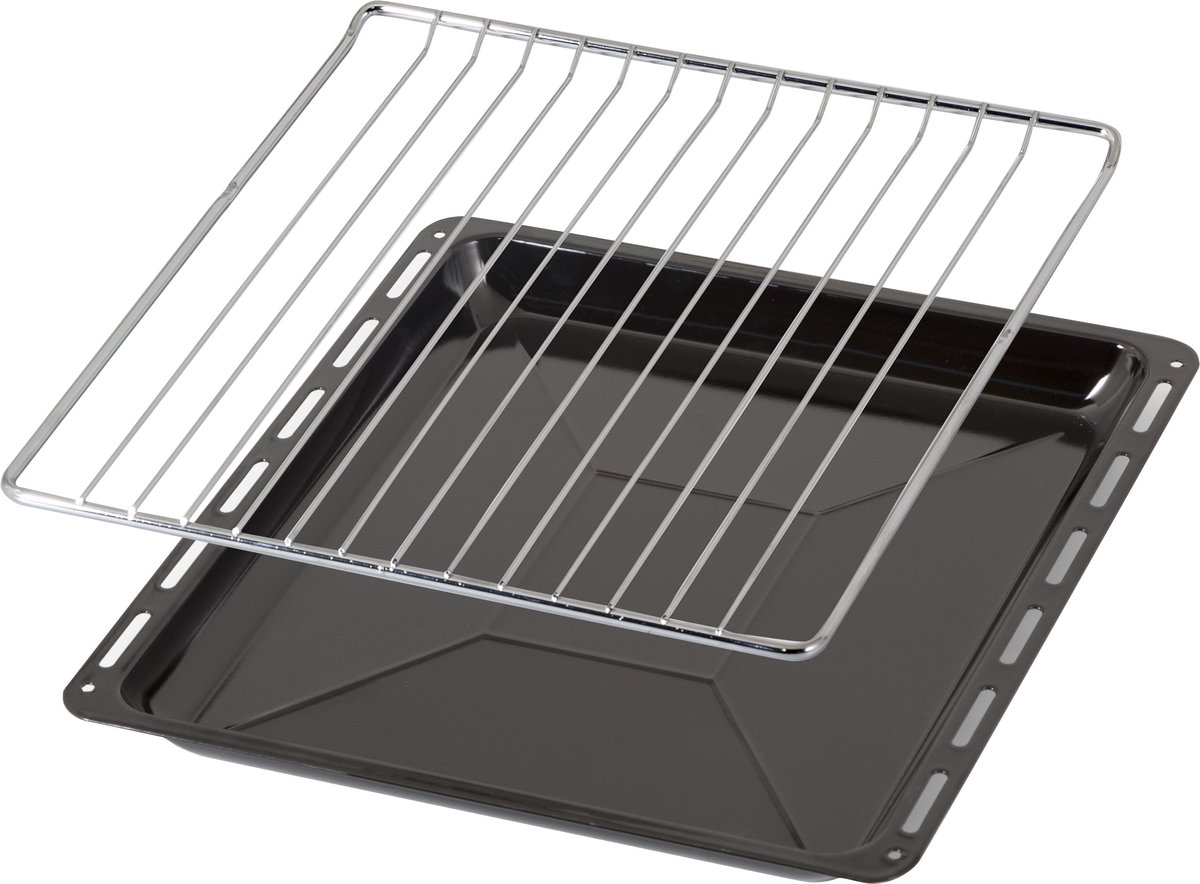 Met een volgens de listing opgegeven inhoud van 48 liter kun je één ruime ovenschaal of twee kleinere bakblikken kwijt, afhankelijk van de indeling. Voor een huishouden van 2–4 personen is dat doorgaans voldoende. Je bakt zonder proppen en zet ook een middelgrote kip of braadstuk in de oven. Controleer wel of het meegeleverde aantal roosters/bakplaten voldoet; die informatie is niet gespecificeerd.