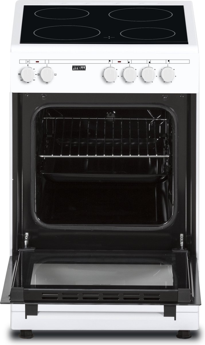 De Fitelli FK5001WIT is een elektrisch fornuis met keramische kookplaat en geïntegreerde oven. Met vier kookzones en een multifunctioneel ovensysteem (onder- en bovenwarmte plus grill) mikt dit model op huishoudens die een complete, eenvoudige en betaalbare kookoplossing zoeken. Denk aan dagelijkse pastagerechten, een ovenschotel voor het gezin of een weekendtaart: dit fornuis is een alleskunner voor basis tot licht gevorderd gebruik.