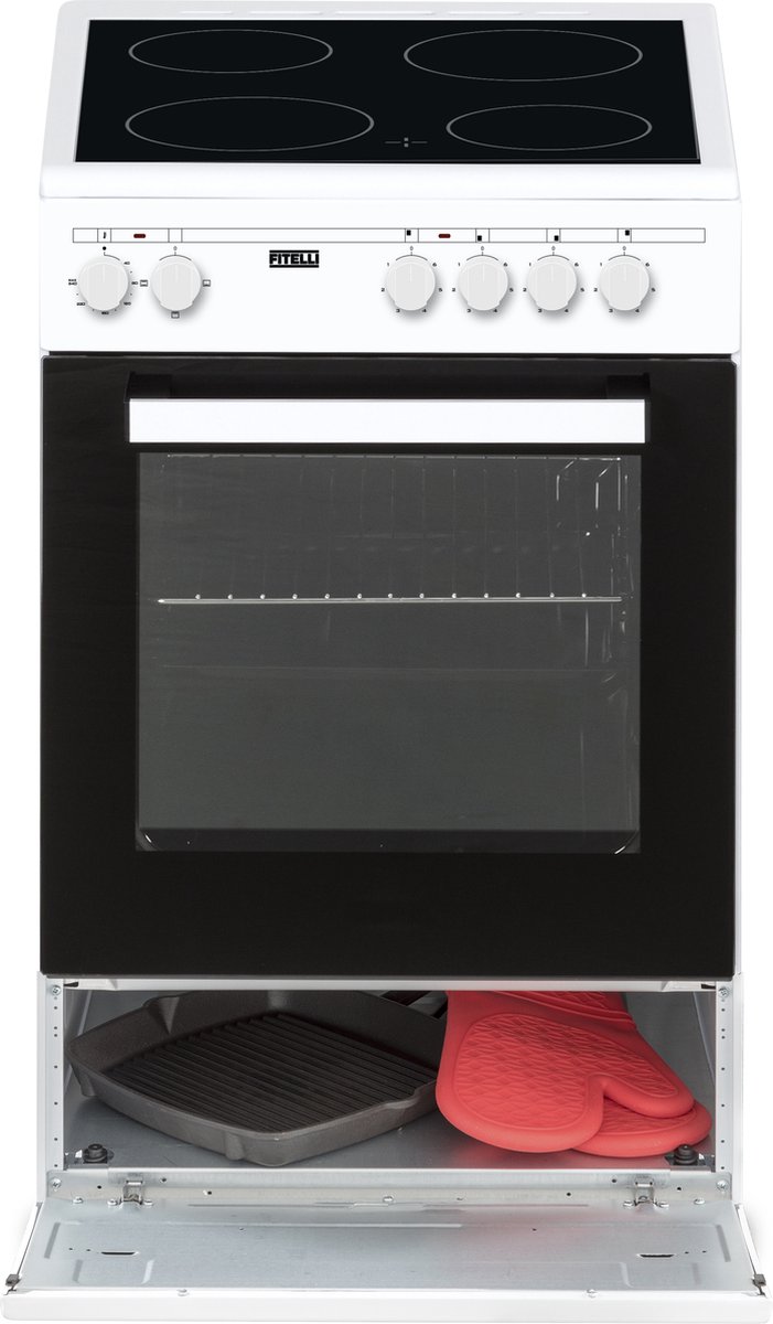 Stel Notificatie voor Product in: Fitelli FK5001WIT Elektrische Vrijstaand fornuis Keramisch WIT 50CM BREED -