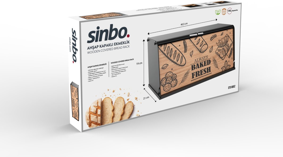 Dit is een stijlvolle broodtrommel met houten klep die je brood langer vers houdt en je aanrecht opgeruimd maakt. Perfect voor Nederlandse huishoudens die rommel willen verminderen; met 40,5 x 21 x 19 cm past hij eenvoudig op het aanrecht.