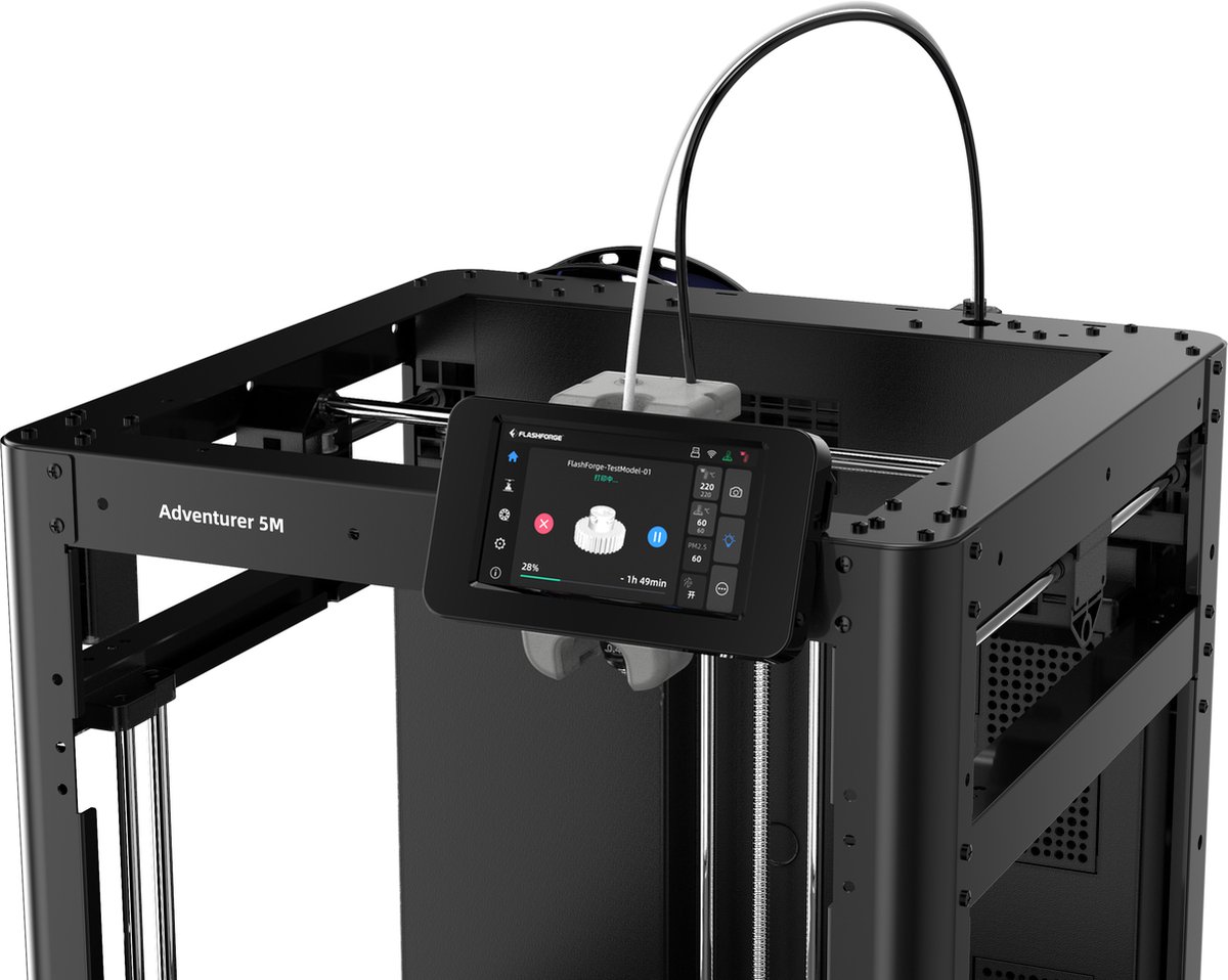 De FLASHFORGE Adventurer 5M is een snelle, gebruiksvriendelijke 3D-printer met CoreXY-architectuur, ontworpen om zowel beginners als gevorderde makers vlot en met hoge kwaliteit te laten printen. Met een compact formaat, direct aangedreven extruder en slimme gebruikshulpen staat hij in het teken van zorgeloos starten, hoge doorloopsnelheid en consistente resultaten.