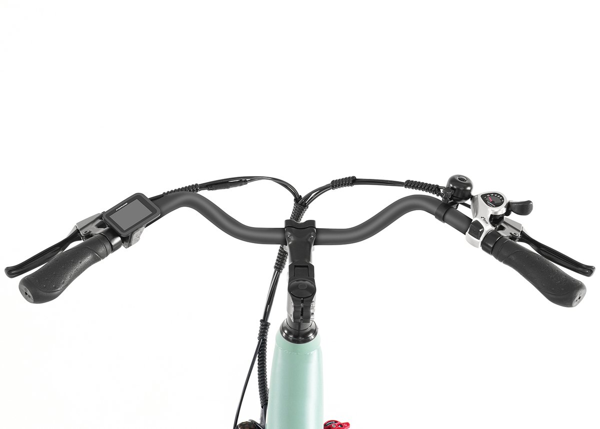 Qua afwerking oogt de e-bike functioneel en verzorgd, met een duidelijk lcd-scherm (2,6 inch) op het stuur en een overzichtelijke bediening. De fiets is verkrijgbaar in twee kleuren (grijs of groen), zodat je kunt kiezen tussen een meer zakelijke of eigenzinnige uitstraling.