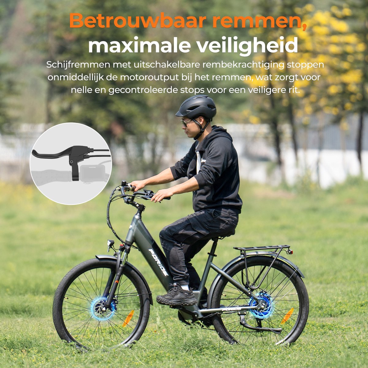 - Behoud controle met schijfremmen, elektrische rem en StVZO‑gecertificeerde verlichting.