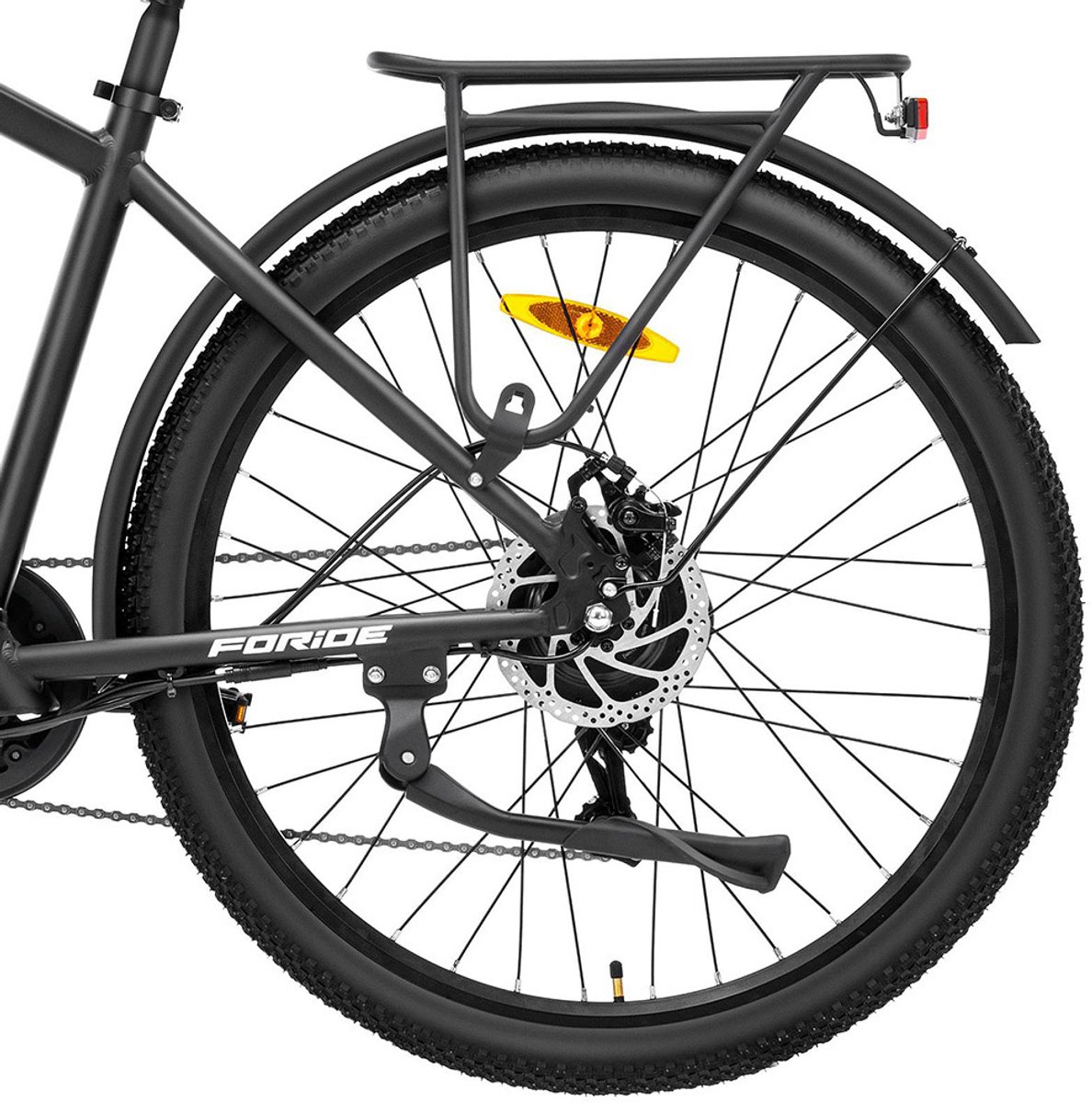 De Foride Roamer 1 is gebouwd rond een frame van aluminiumlegering. Dat biedt een goede balans tussen sterkte, stijfheid en gewicht, met als resultaat een solide rijgevoel dat vertrouwen geeft. Het nettogewicht van 27 kg is aan de stevige kant, maar dat past bij de robuuste bouw, het hogere draagvermogen (maximaal 120 kg) en de geïntegreerde accu. Voor wie vaak trappen of liften neemt, is dit een punt om mee te wegen. Tijdens het rijden draagt het gewicht juist bij aan stabiliteit.